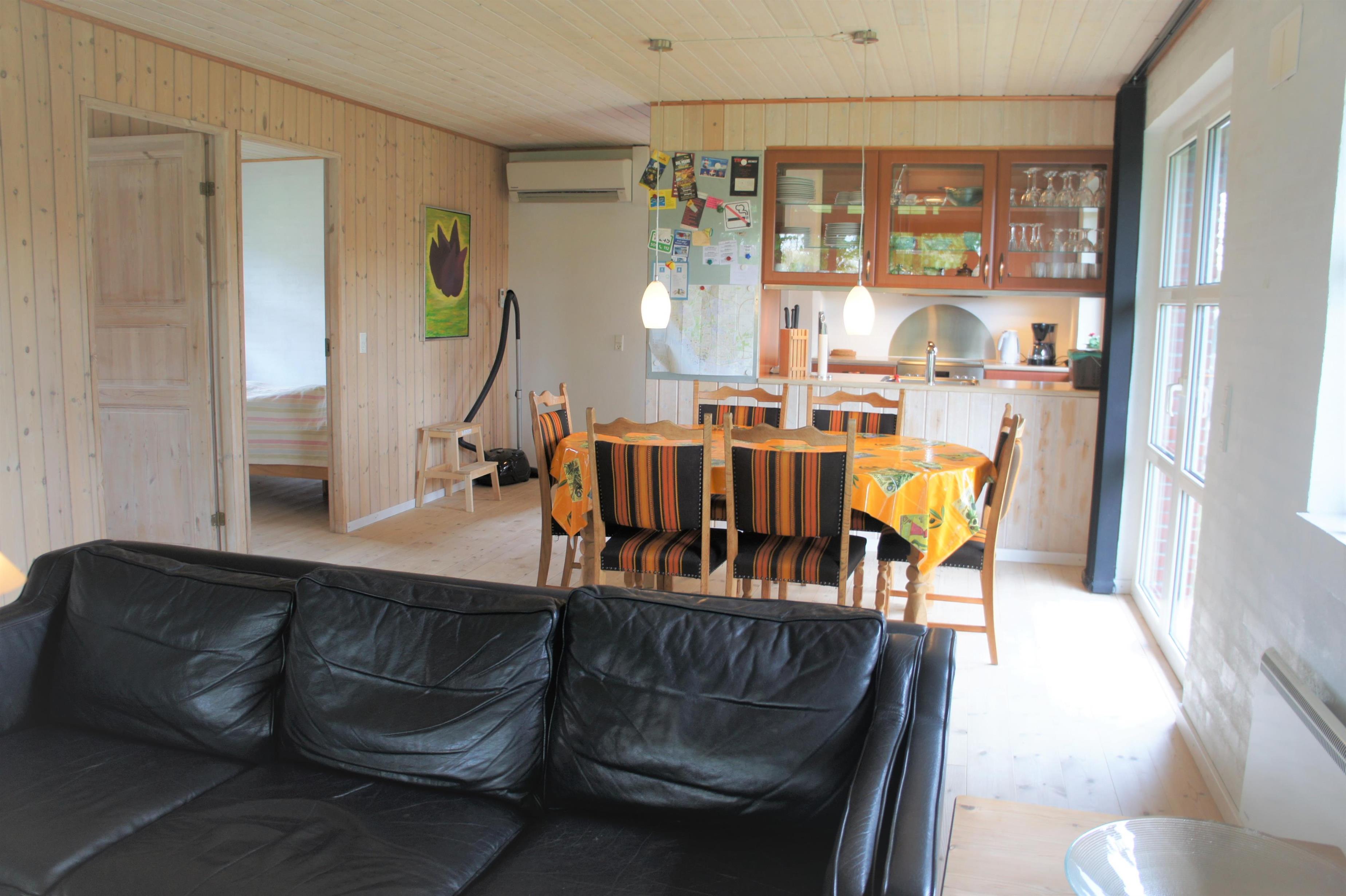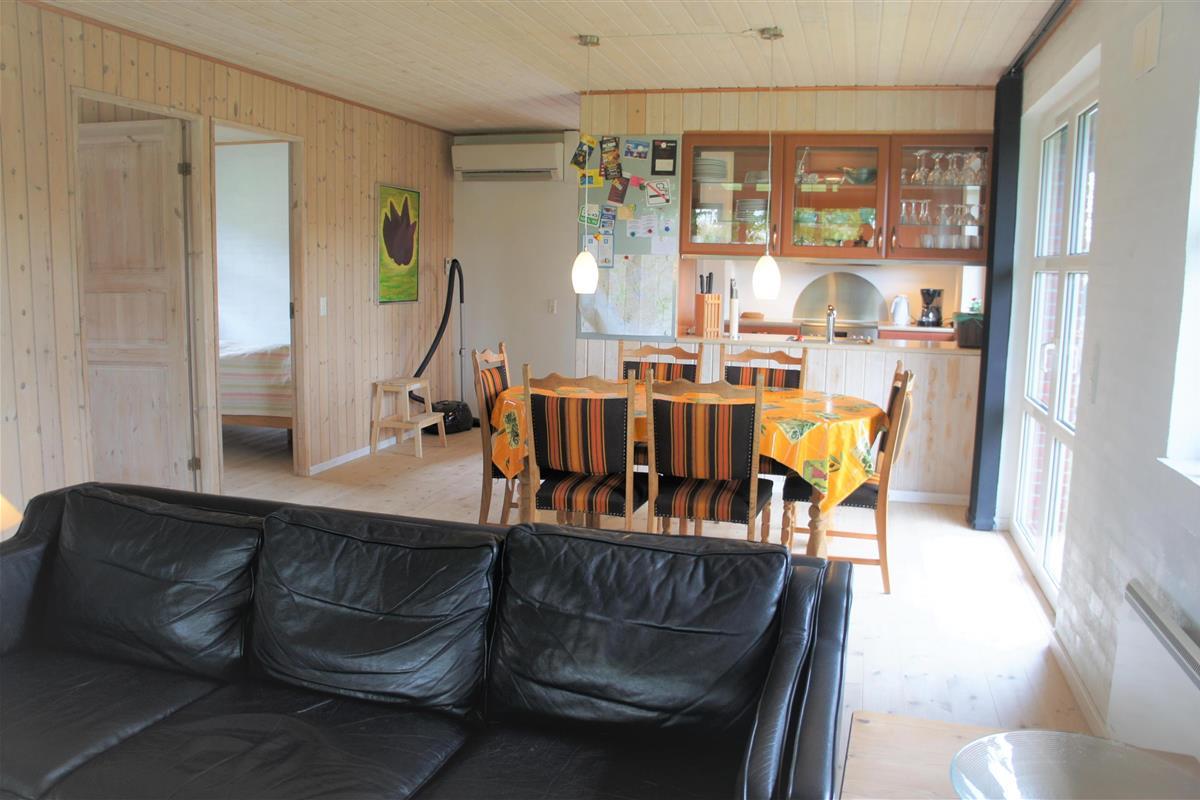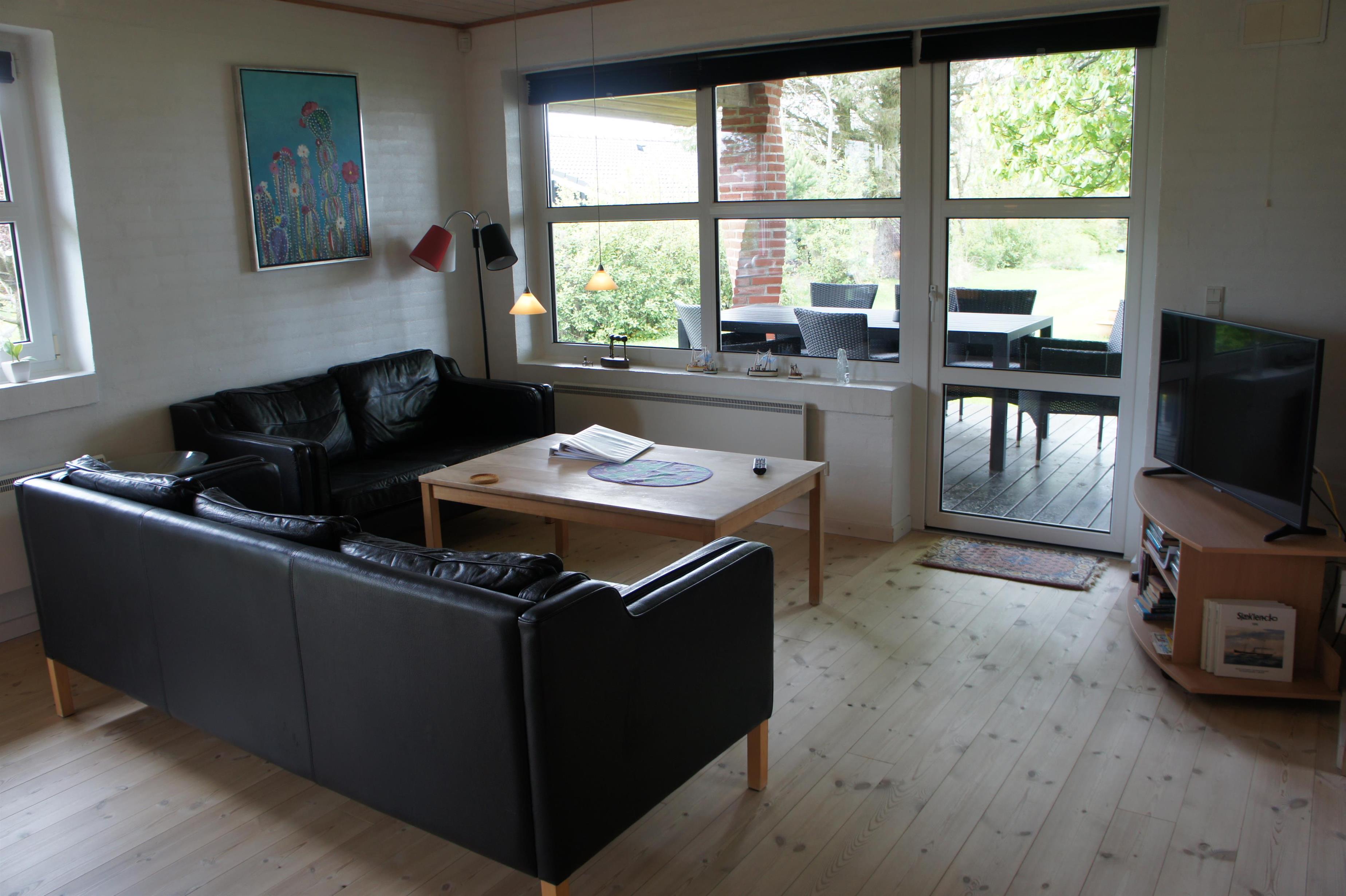 A modern holiday house with air condition. The house has a big bright kitchen/living room area (40 m2). The living room is furnished with dining table, radio with cd player, kabel tv. There is an exit to a covered south/west facing terrace with garden furniture. The kitchen has dishwasher, microwave, fridge/freezer, coffee maker, stove, etc. The utility room has washing machine and underfloor heating as well as the bathroom which is furnished with sauna, toilet, sink and shower. Internet. Outside there is a and lawn to play on. The house is located only 5 km from Esbjerg. It is a non-smoker house and there must not be a pet in the house. 2 bedrooms with double beds. 1 bedroom with bunk beds and children furniture.
