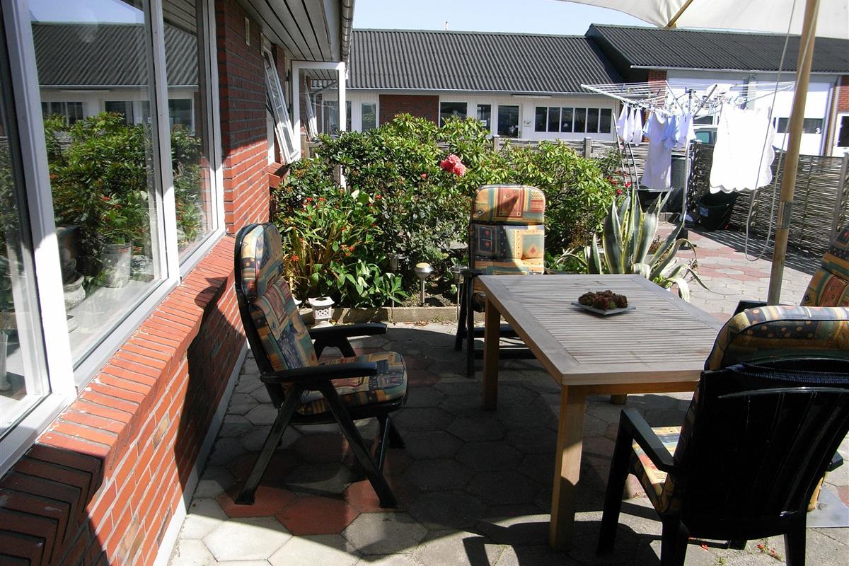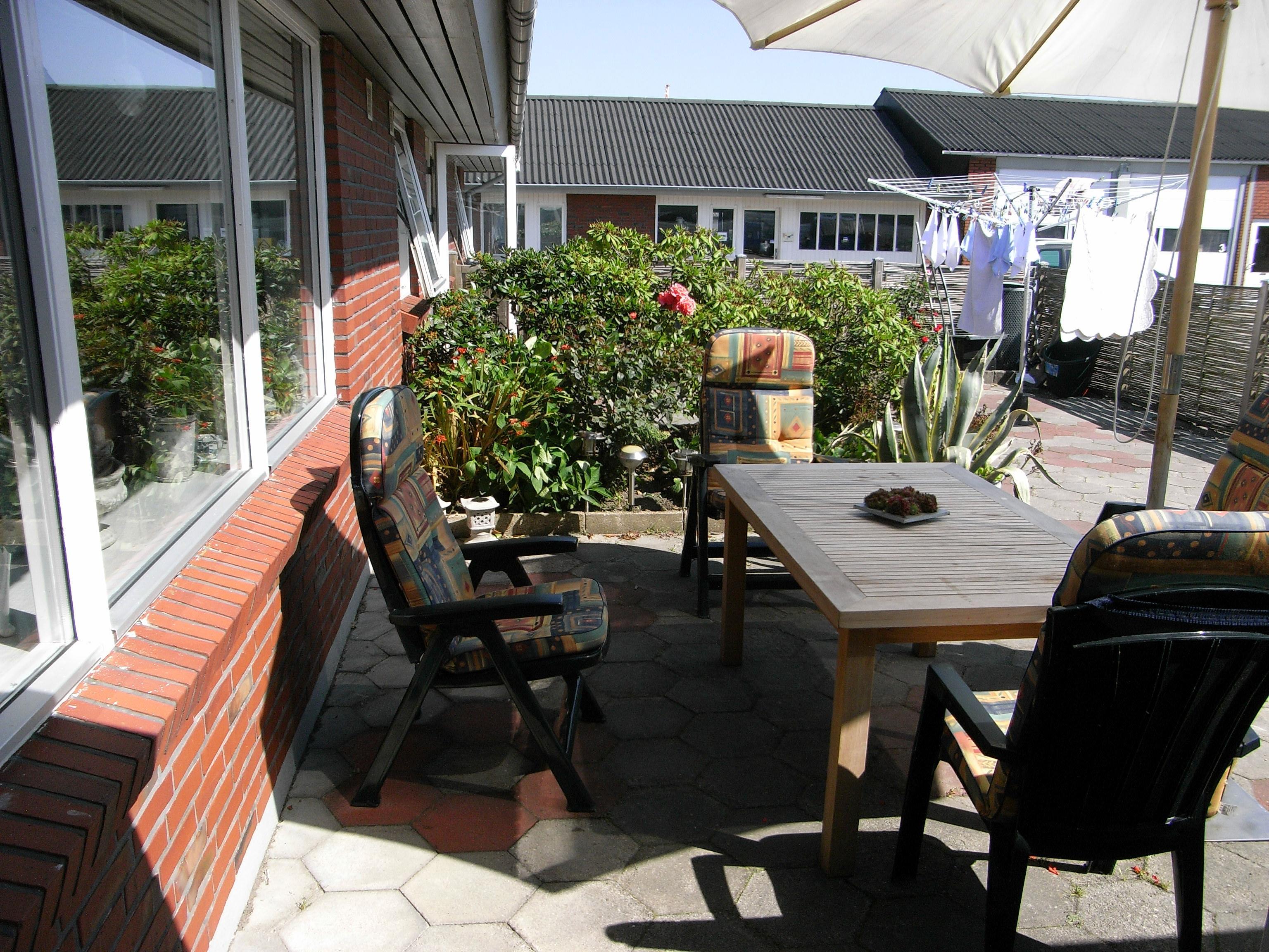 To the house belongs a foreclosed garden with fence and tiles as well as garden furniture.