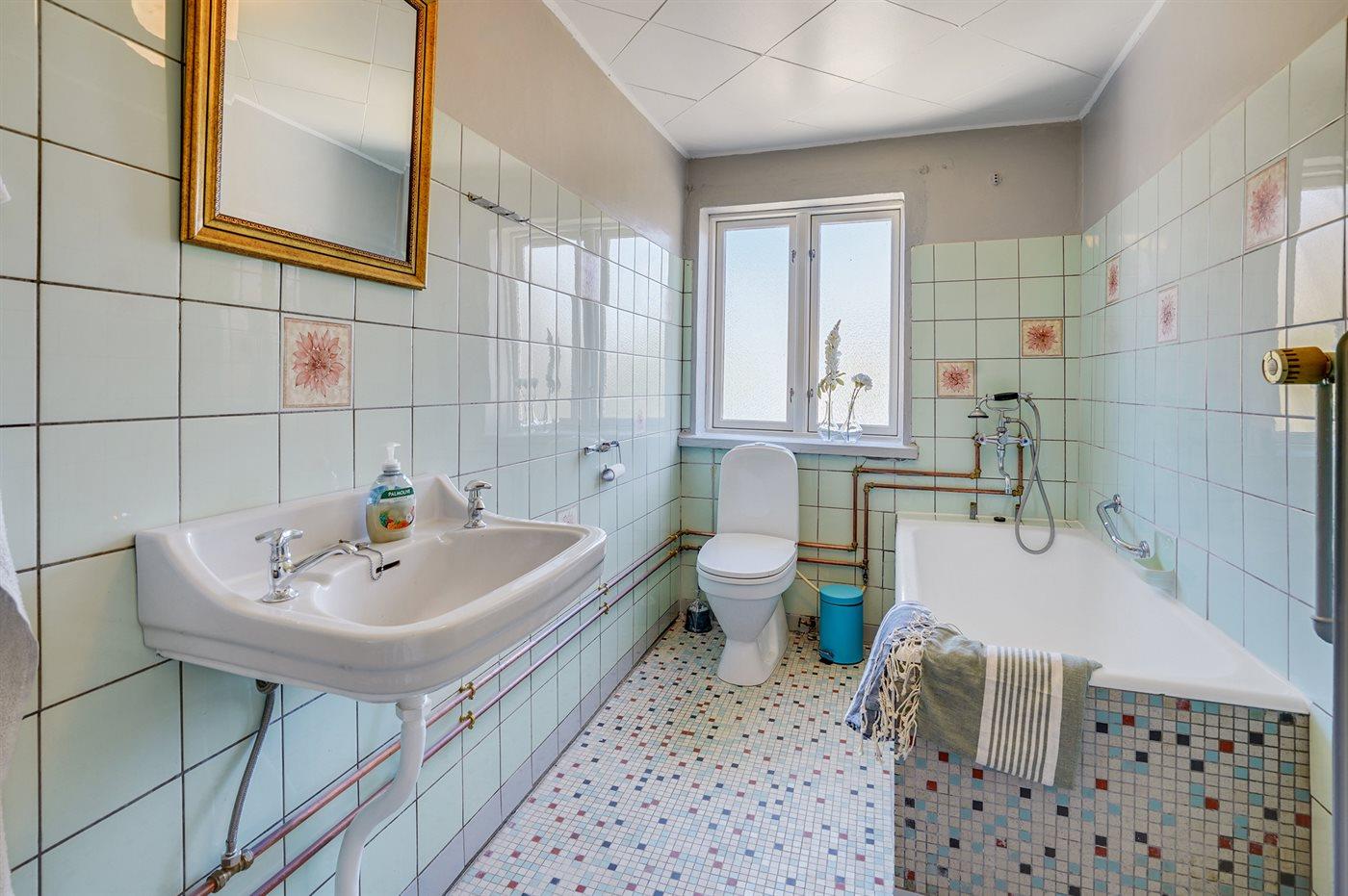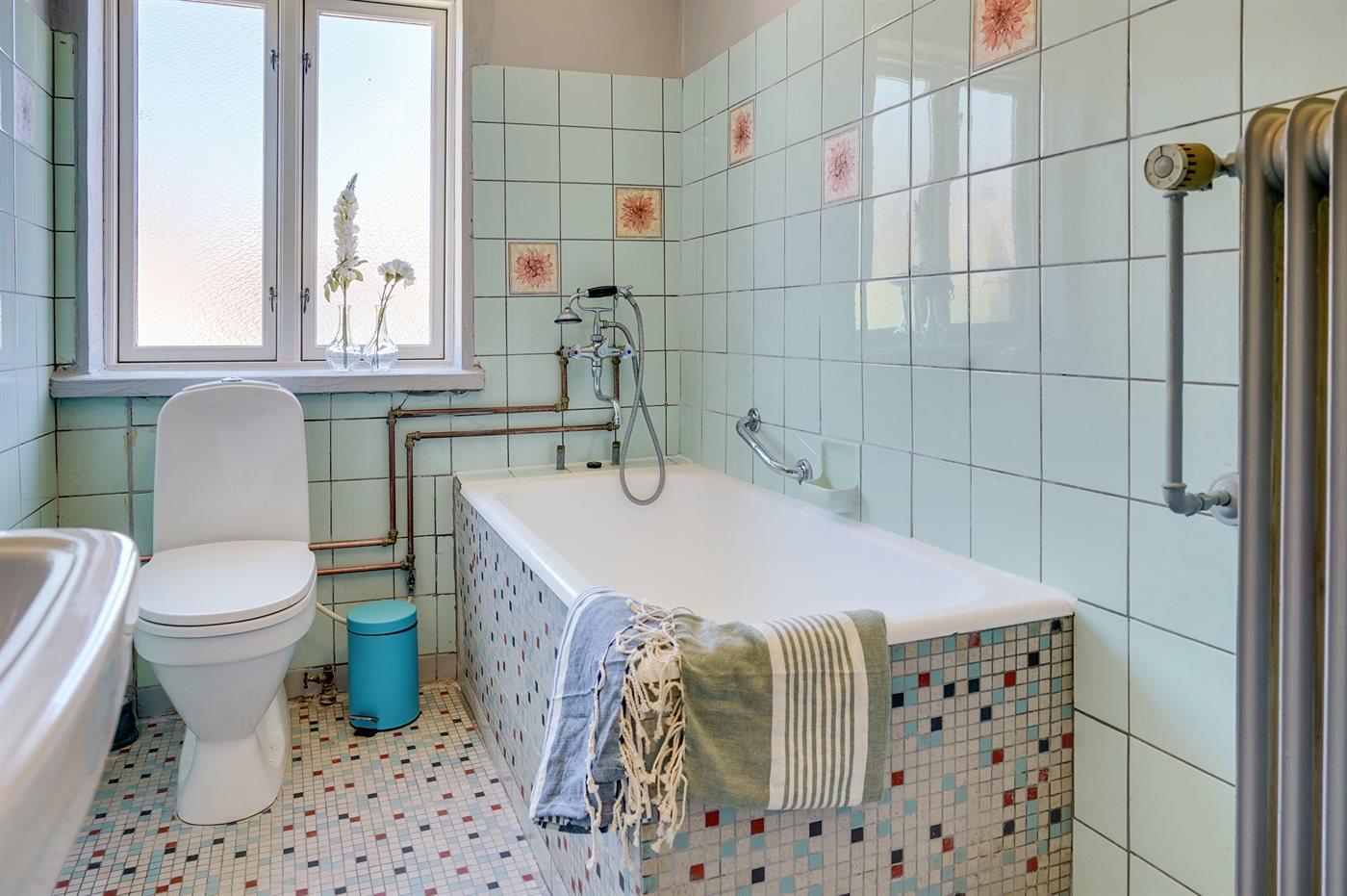 Er is 1 badkamers met badkuip, douche en toilet.