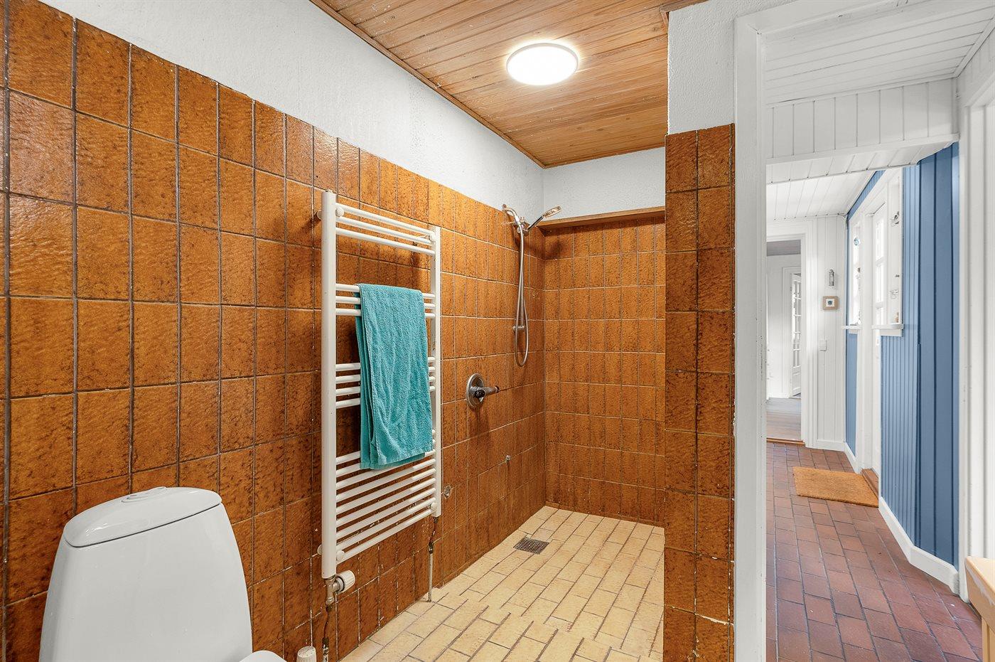 Er is 1 badkamer met douchehok en 2 toiletten, waarvan 1 gastentoilet. Er is vloerverwarming in 1 badkamer.