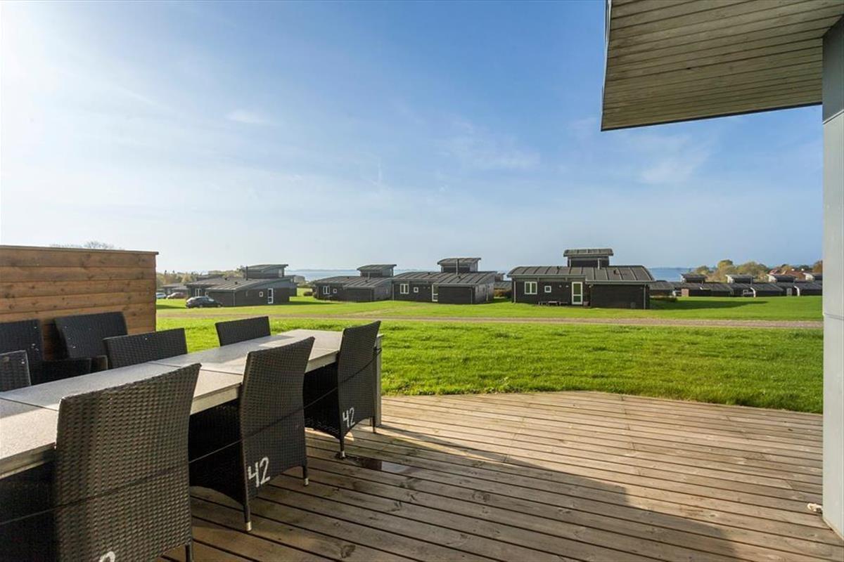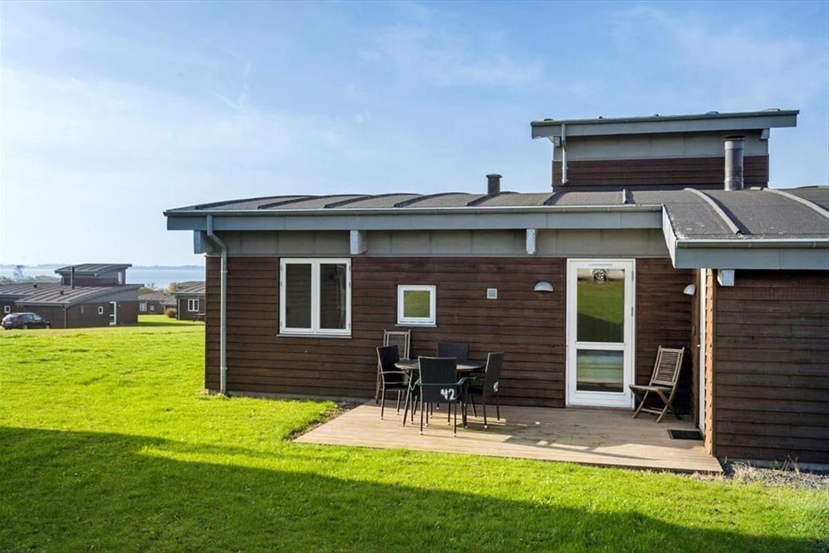 Nieuwgebouwd luxe vakantiehuis met whirlpool en sauna gelegen ten zuiden van Fåborg met uitzicht over het water. Het huis heeft 2 verdiepingen met een woonkamer, keuken, badkamer en slaapkamer op de begane grond en een kleine kamer met toegang tot het balkon op de 1e verdieping. Rustige omgeving met kindvriendelijk strand.