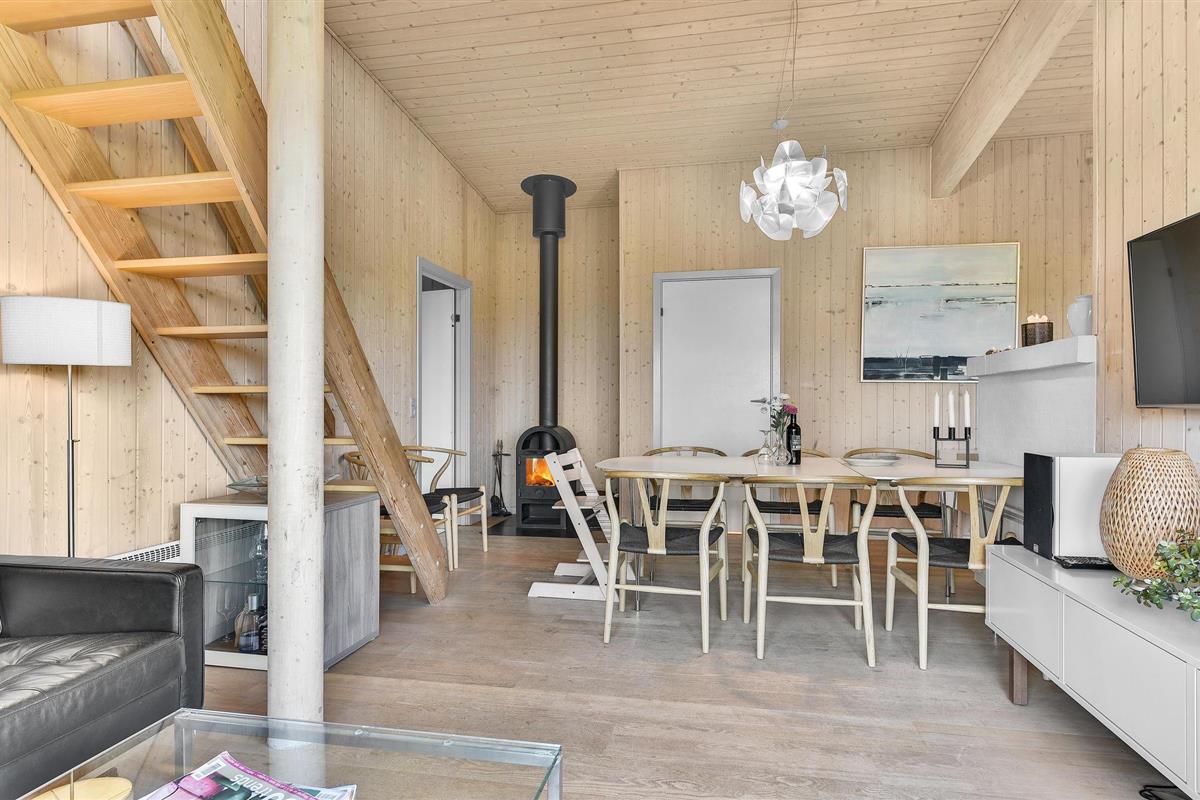 Het hart van het huis is de woonkamer van 40 m², die overloopt in de open keuken en een houtkachel heeft die een warme en gezellige sfeer verspreidt met zijn knapperend vuur. In het huis bevinden zich 3 slaapkamers en 2 badkamers, waarvan de grootste is uitgerust met een 2-persoons bubbelbad en toegang heeft tot de eigen sauna van het huis. Alle slaapkamers zijn voorzien van tweepersoonsbedden en er is een aparte badkamer bij de woonkamer. Een huis met klinkers en houten vloeren.