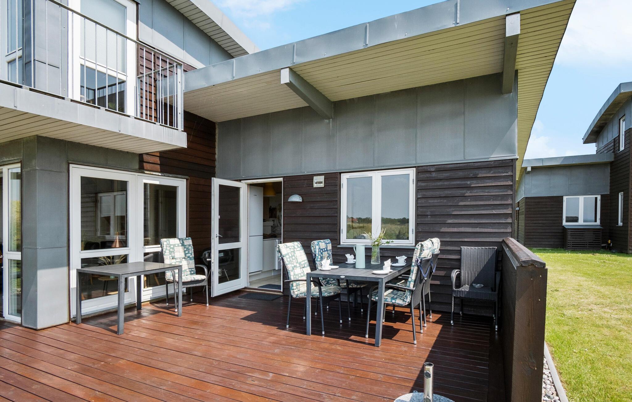 Dicht bij het strand ligt dit mooie, goed ingerichte vakantiehuis met een prachtig panoramisch uitzicht over de Zuid-Funense archipel. Op de eerste verdieping is er een kleine woonkamer met toegang tot een kleiner balkon waar u ook kunt genieten van het mooiste uitzicht. Het huis is voorzien van 4 slaapkamers met ruimte voor in totaal 8. De gezellige woonkamer ligt samen met de eethoek en de keuken, die zeer goed is uitgerust. Er zijn 2 badkamers met vloerverwarming, één met whirlpool en sauna, de andere met wasmachine en droger Door het hele huis liggen klinkers of houten vloeren.