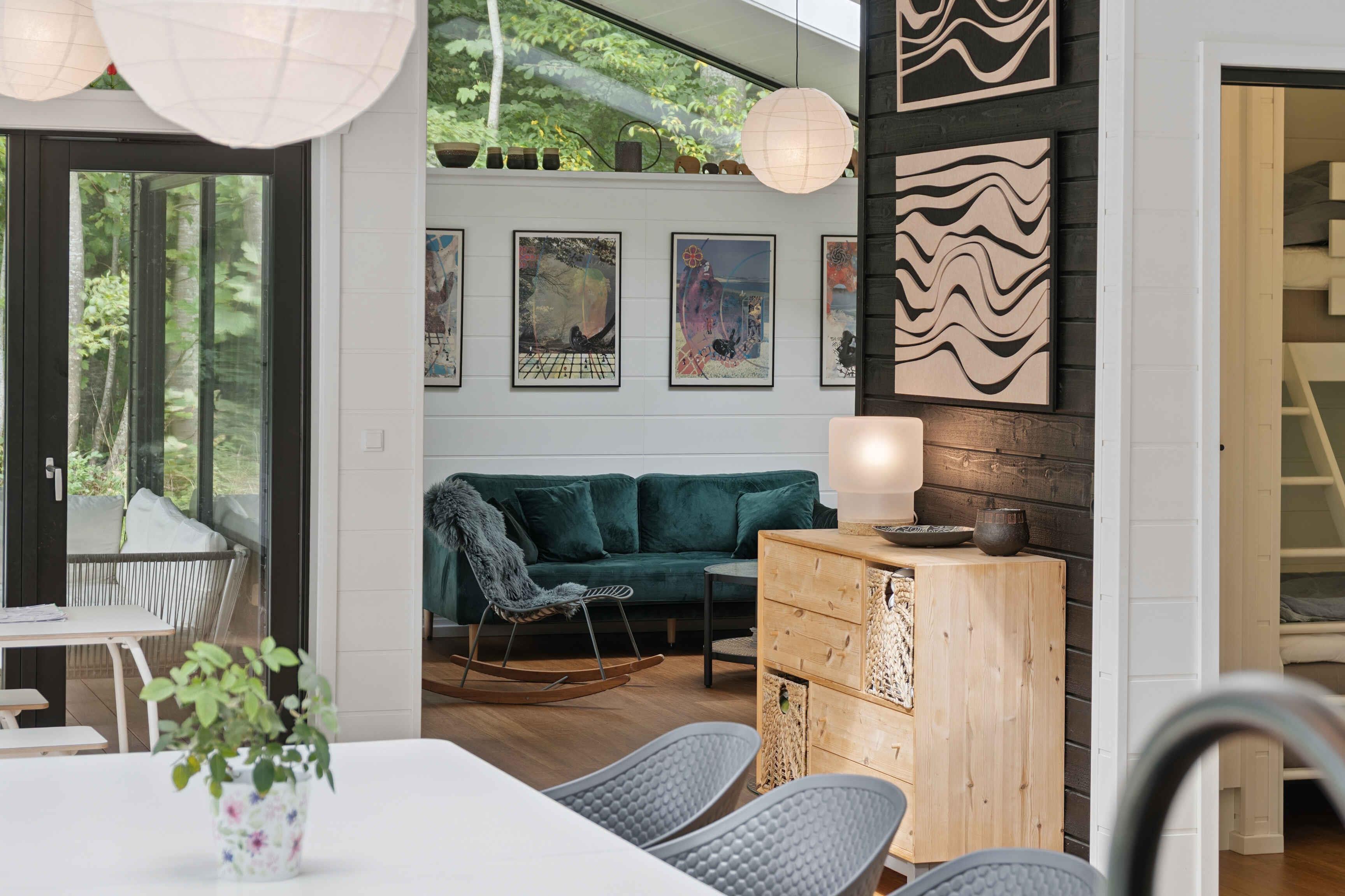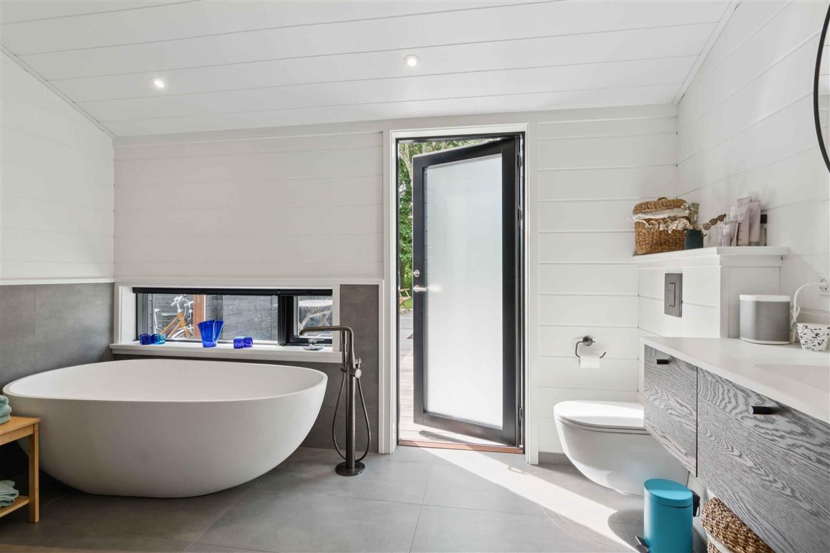 Licht vakantiehuis met 3 slaapkamers in het hoofdgebouw en 1 in het bijgebouw. Buitenbad, warmtepomp, houtkachel, internet, sauna, 2 badkamers (één met bad). Grote privégrond in exclusief gebied met grasveld voor spel.