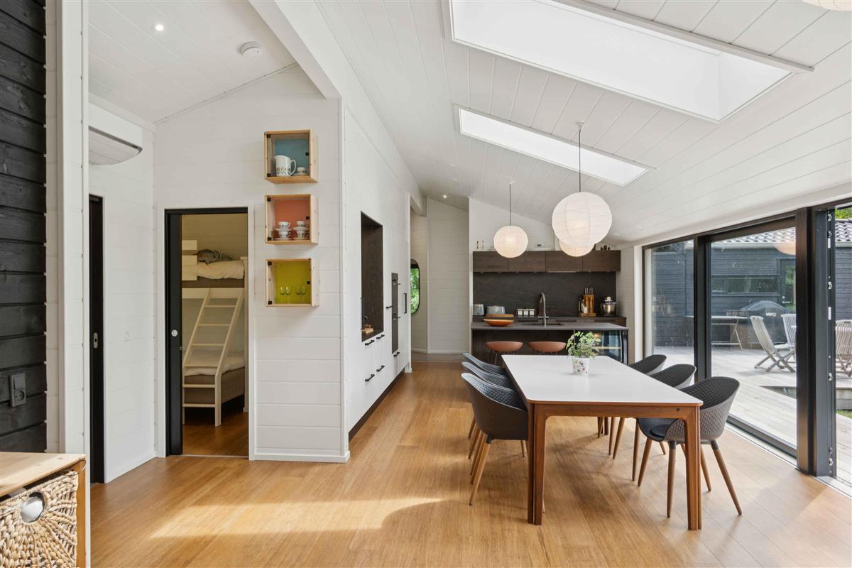 Dit vakantiehuis van 145 m² biedt ruimte aan zowel kleine als grote reisgezelschappen. Met vijf slaapkamers en tien slaapplaatsen is er voldoende plek voor families of vrienden die samen vakantie willen vieren. Drie kamers liggen in het hoofdgebouw, terwijl het bijgebouw een extra kamer biedt. De inrichting is licht en praktisch met warmtepomp en houtkachel, waardoor het huis het hele jaar door geschikt is. Internet maakt het mogelijk werk en ontspanning te combineren tijdens de vakantie. Twee badkamers zorgen voor comfort, waarvan één met ligbad. Daarnaast zijn er een sauna en een buitenbad, ideaal voor ontspanning in rustige omgeving. Vanuit de woonkamer is er toegang tot een ruime terras. Het perceel is groot en beschut met een grasveld dat uitnodigt tot spel, bolden en familieaktivitieten. Op slechts 700 meter van het huis ligt de kust, waar strand en zee uitnodigen tot zwemmen, spelen en wandelingen langs het water. De omgeving is aantrekkelijk omdat natuur en activiteiten samenkomen. Het bos in de buurt biedt meerdere speeltuinen, ideaal voor kinderen. Fiets- en wandelpaden maken het eenvoudig om de natuur van dichtbij te beleven. Odsherred staat bekend om zijn unieke natuur en is erkend als UNESCO Geopark. Hier vindt men heuvels, velden en kustlandschappen. Ook zijn er boerderijwinkels, lokale producten, galerieën en gezellige eetgelegenheden binnen korte afstand. Dankzij de combinatie van moderne faciliteiten, wellness en de ligging dicht bij strand en bos is dit huis een ideale keuze. Het biedt alt wat nodig is voor een vakantie vol ro, samvær en oplevelser.
