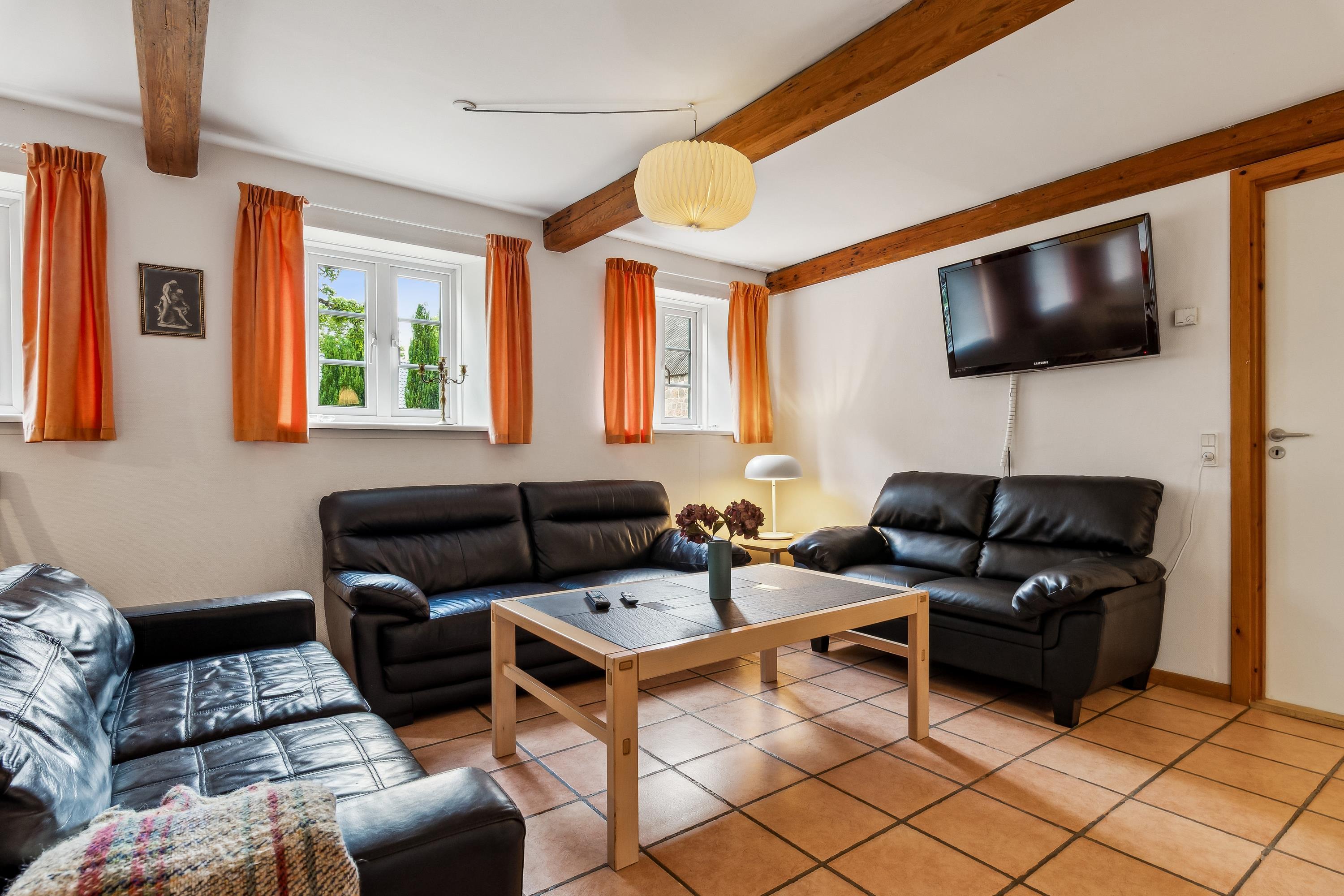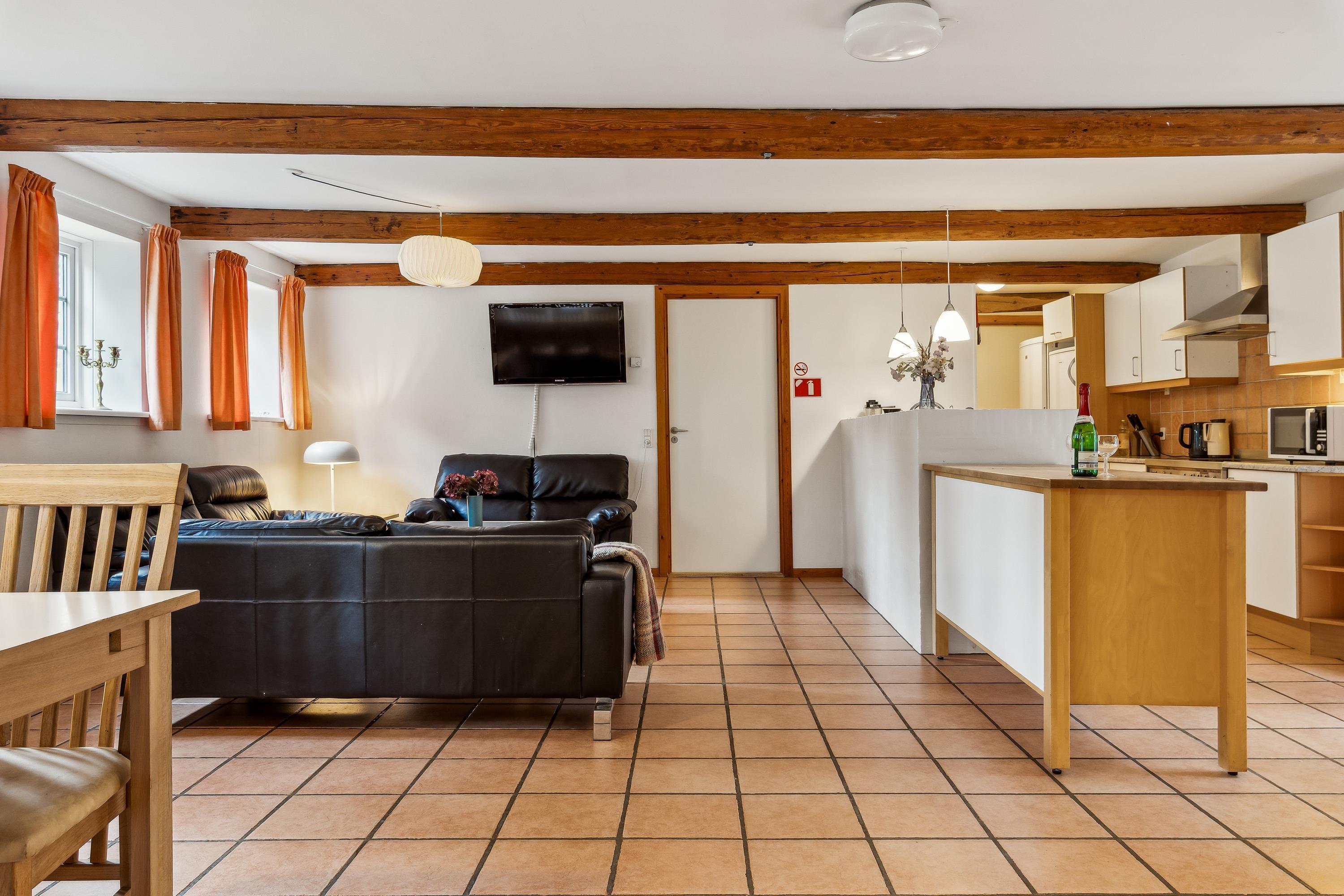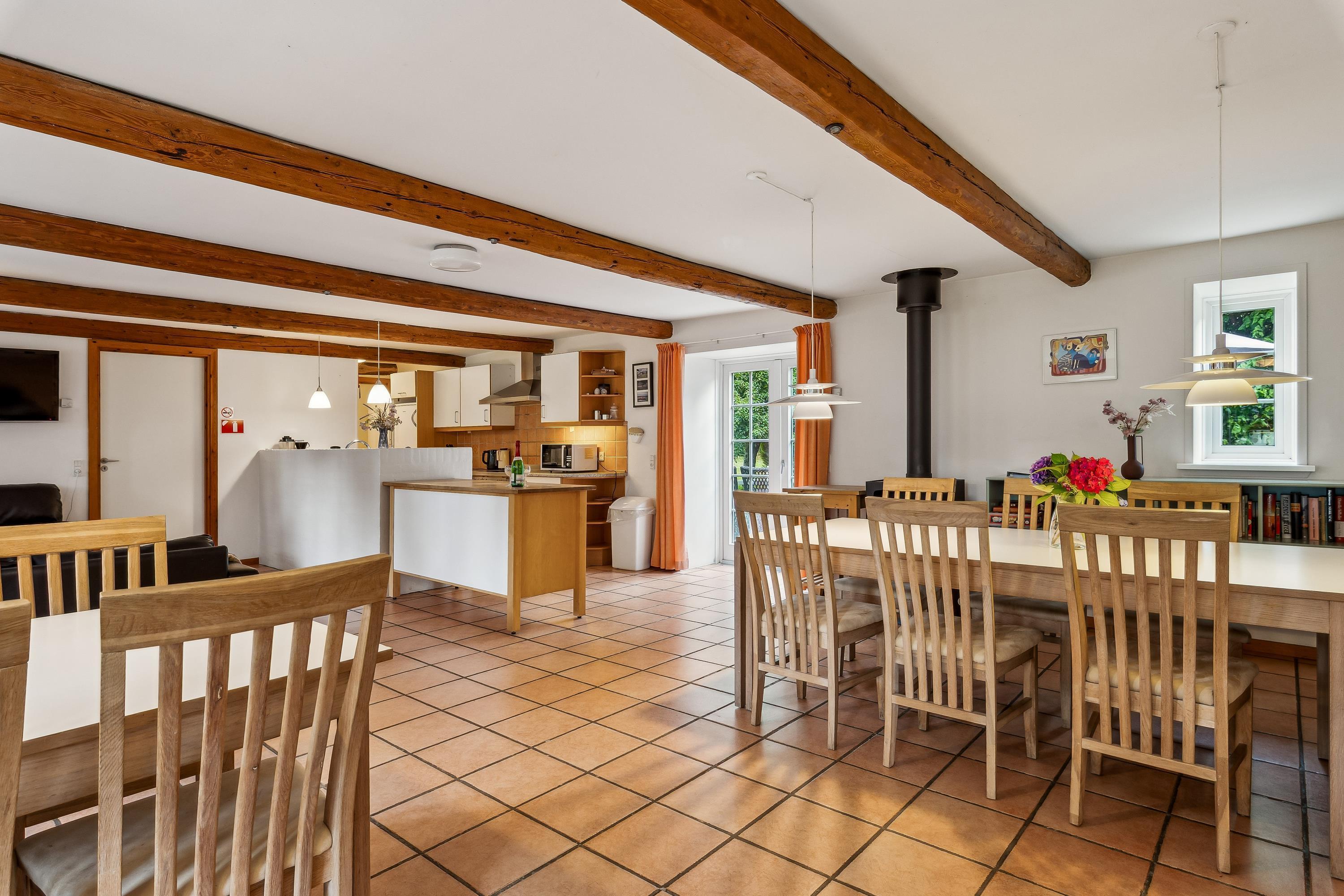 The East Holiday Home is slightly smaller than the Main Building and can accommodate approximately 16–18 overnight guests. You have access to a spacious kitchen-dining area and a cosy living room where you can relax. There is also a terrace with a view, play facilities, a barbecue area and access to the shared outdoor spaces at Røndegård.