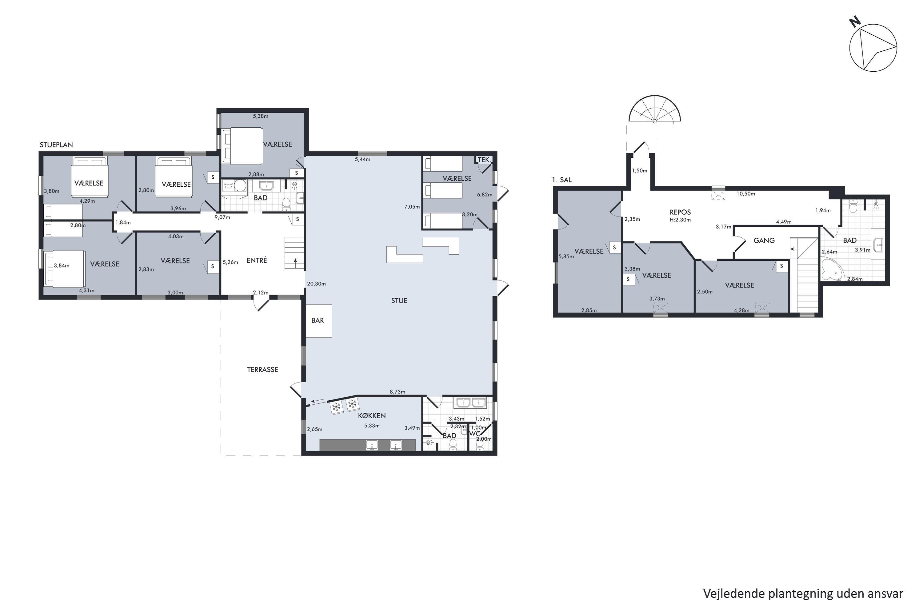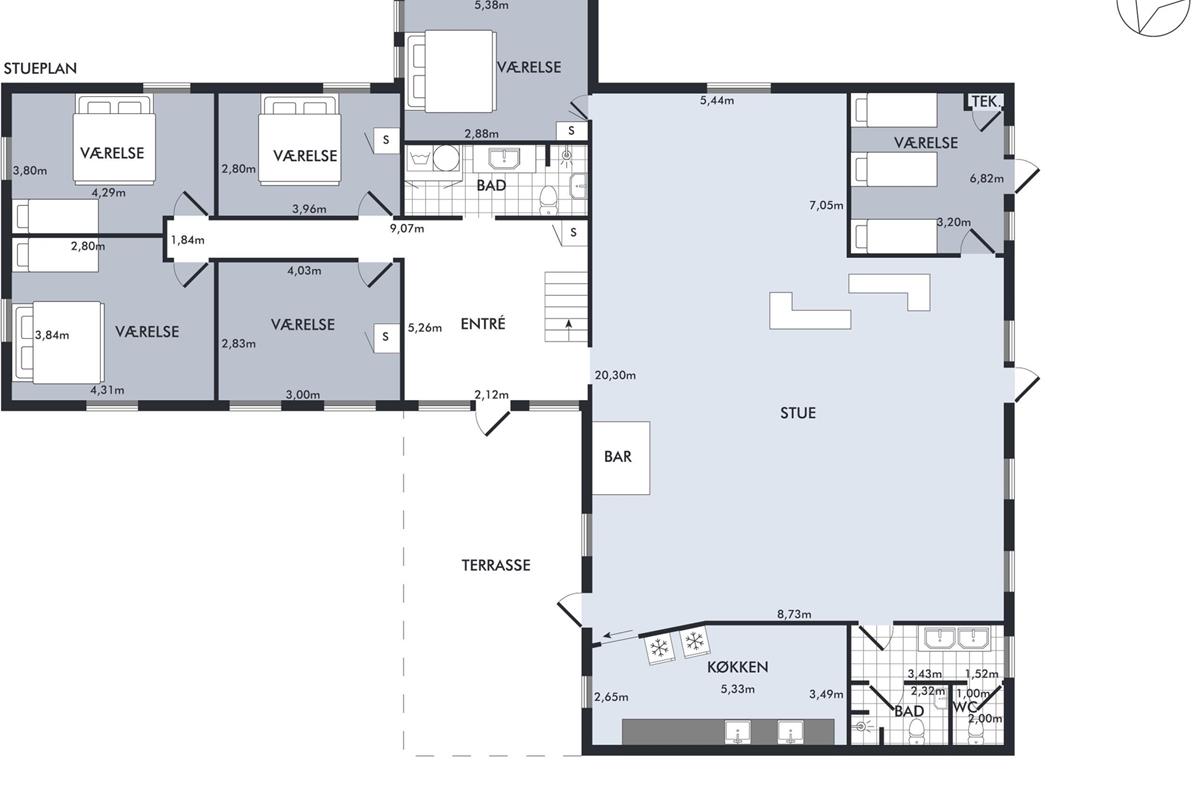 Holiday Home Vest has space for both overnight stays and larger parties. There is room for up to 28 people to stay overnight, while the party room can accommodate up to 60-80 dining guests. Holiday Home Vest also has a covered outdoor area where young and old can have fun.
