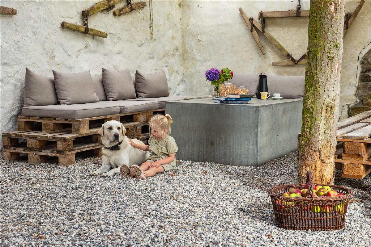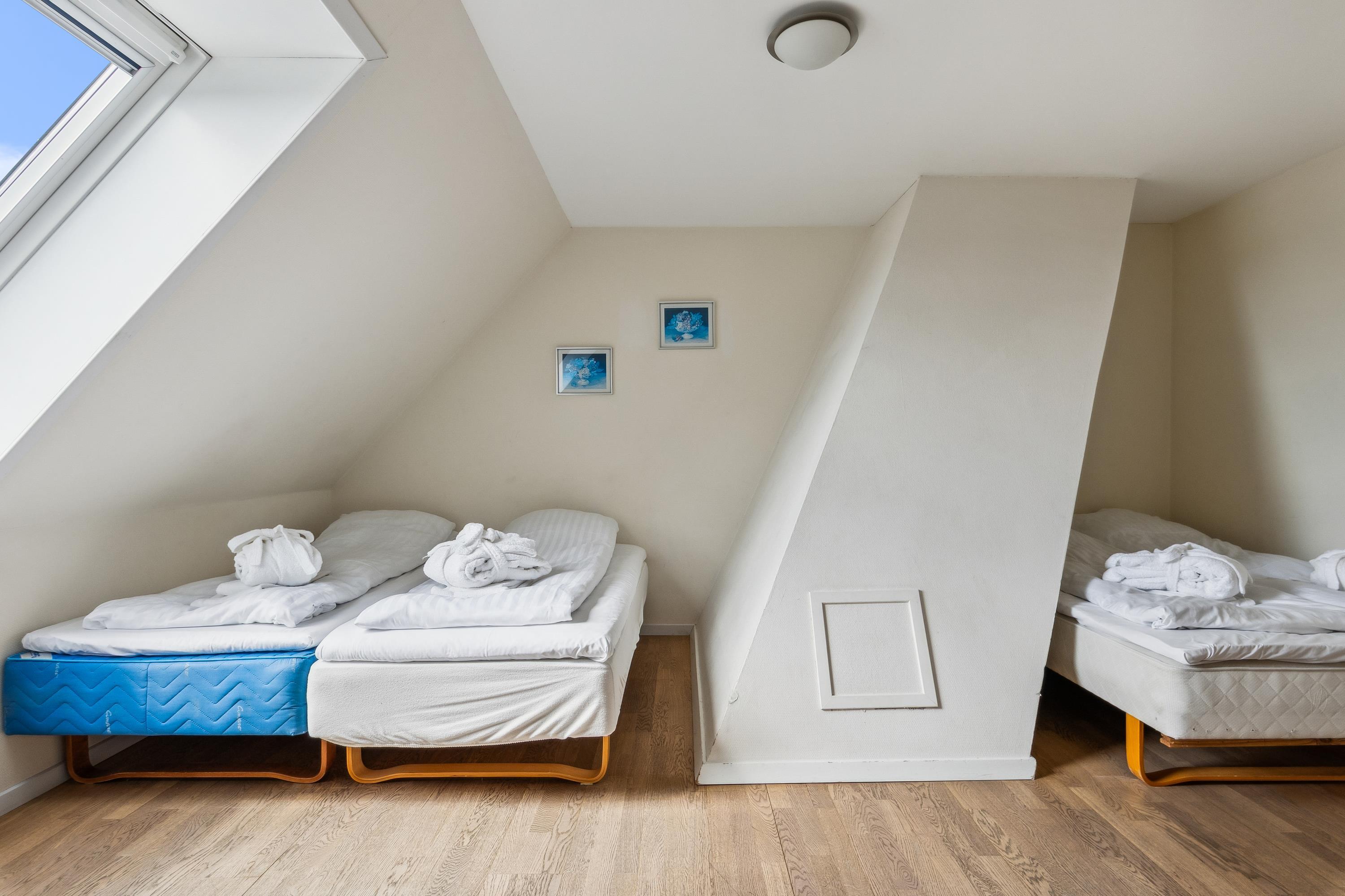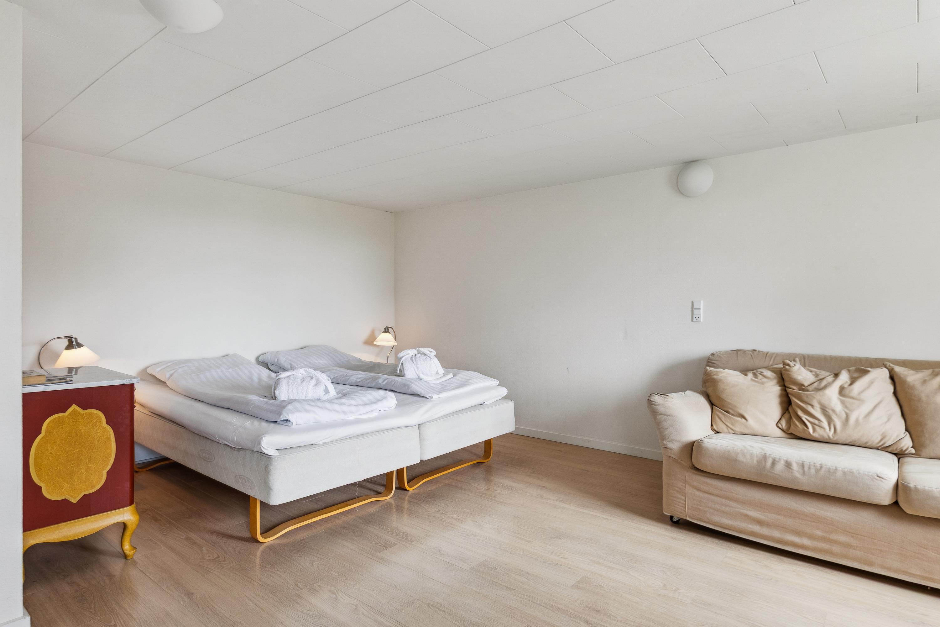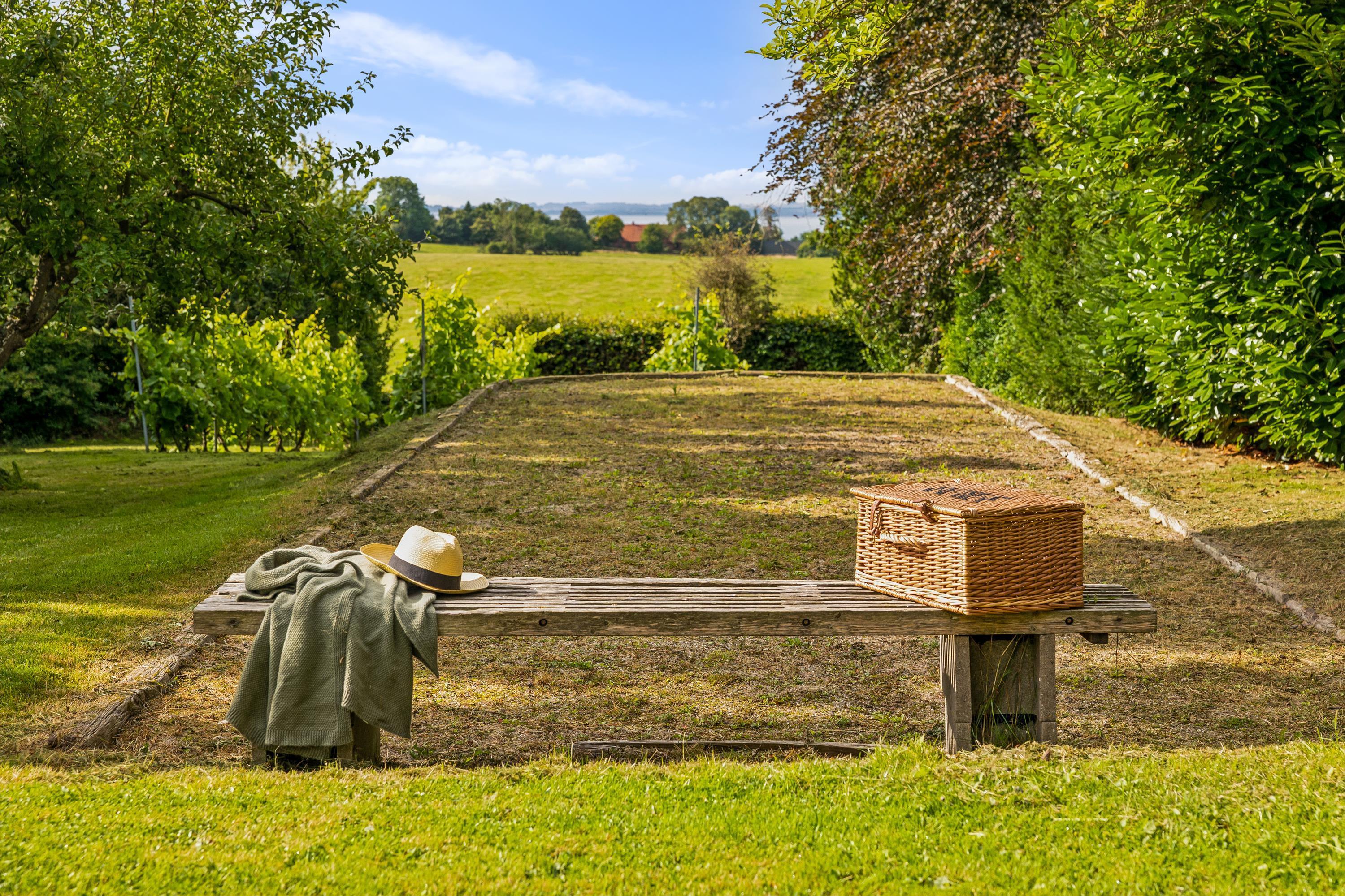 The Main Building has room for 26 people, and there is a lovely, large terrace with a view over Kaløvig. There is also a petanque court, swings, a playhouse and sandbox, as well as access to a football field and an orchard, so there is always something to do – whether you are an adult or a child.