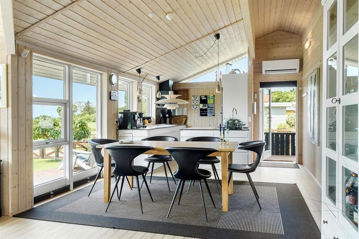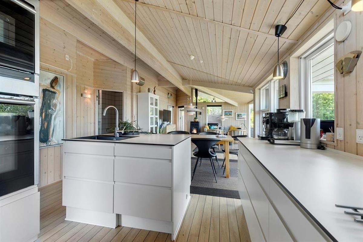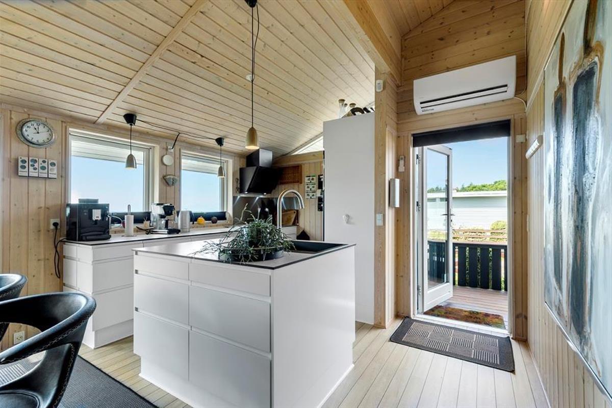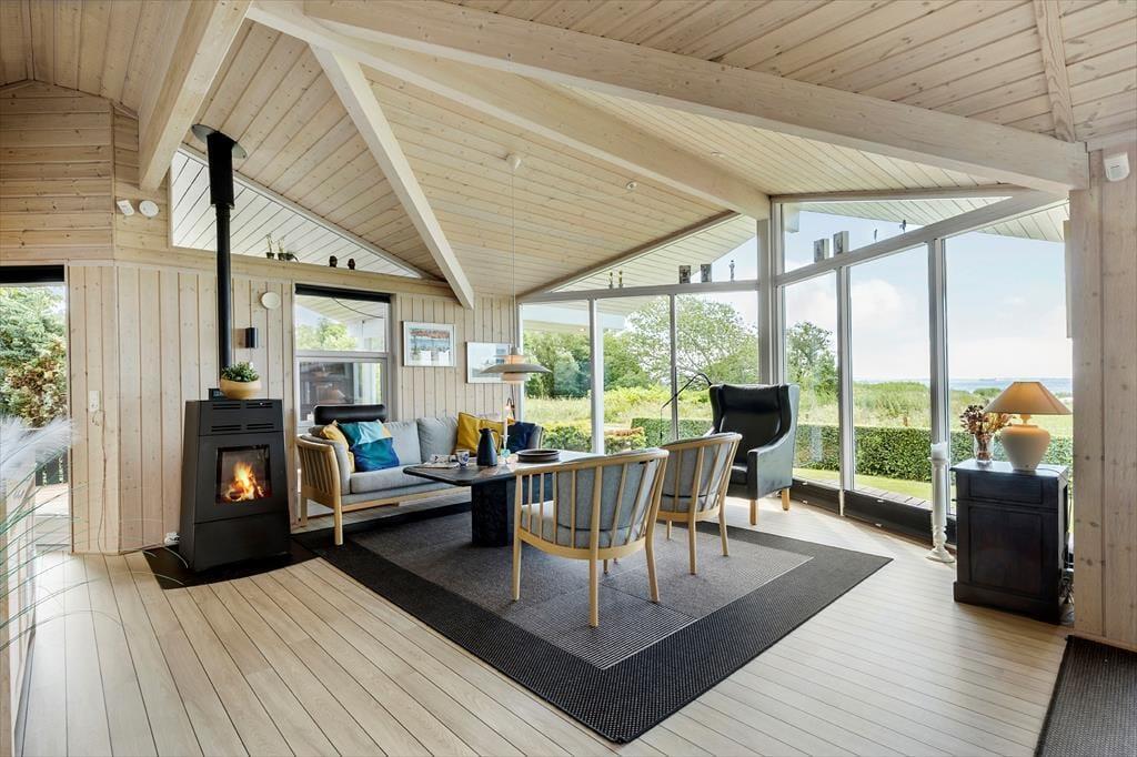 Dein helles, einladendes Ferienhaus begeistert mit einer entspannten Urlaubsatmosphäre und einem Panoramaausblick auf das Meer. Es bietet mit seinem offen kombinierten Küchen-, Wohn und Essbereich und den komfortablen Schlafräumen viel Platz für das gemütliche Beisammensein, für ruhige Momente und erholsame Nächte. Der im Wohnraum platzierte Kaminofen verwöhnt dich und deine Lieben an kühlen Abenden mit behaglicher Wärme und einem Maximum an klassischer Ferienhausstimmung. Die großen Fenster ermöglichen einen attraktiven Tageslichteinfall und schaffen eine schöne Verbindung zur umliegenden Natur. Stelle dir nur vor, wie du früh am Morgen aufstehst und den neuen Urlaubstag mit einem frischen Becher Kaffee in der Hand im Wohnraum begrüßt - untermalt vom Meeresrauschen. Schöner geht es kaum!