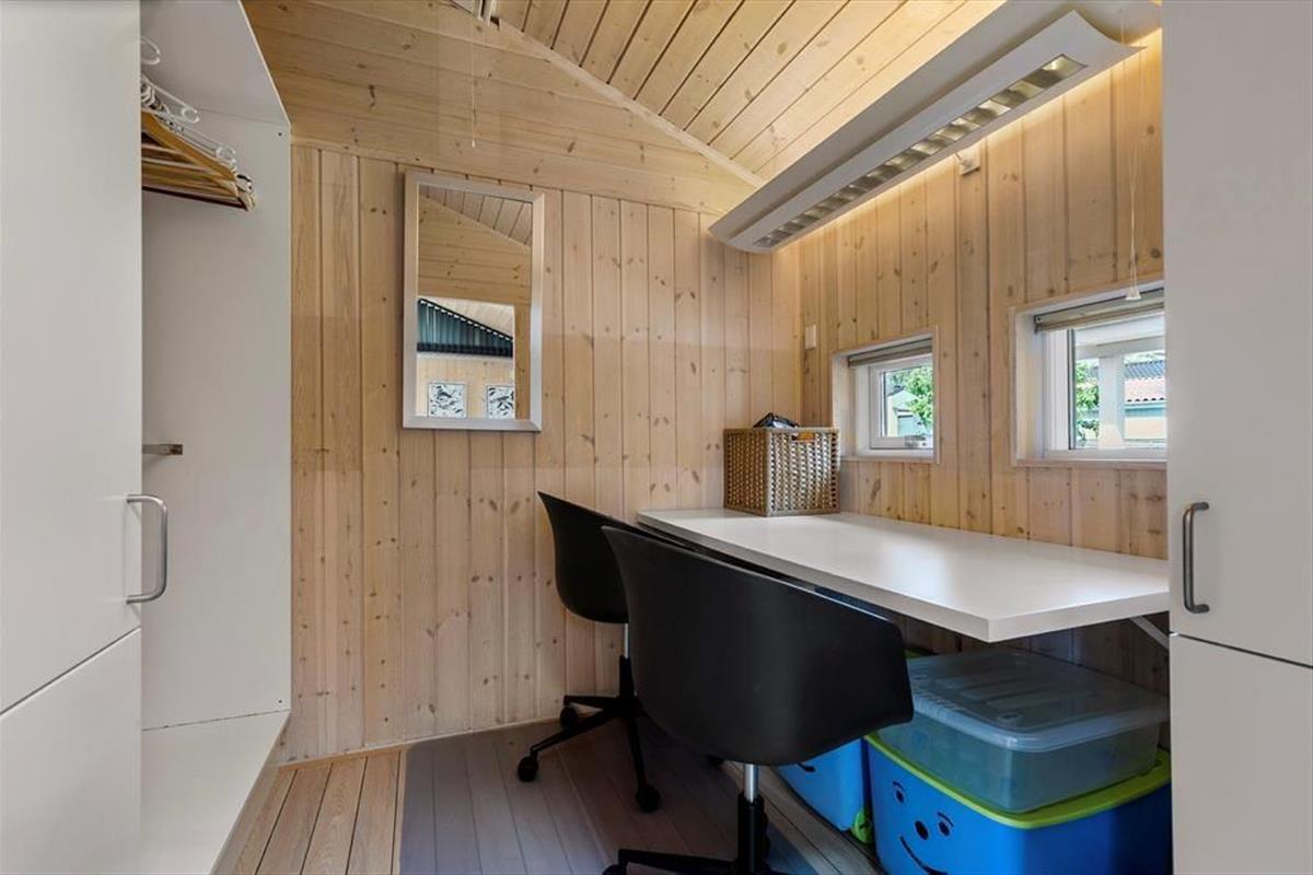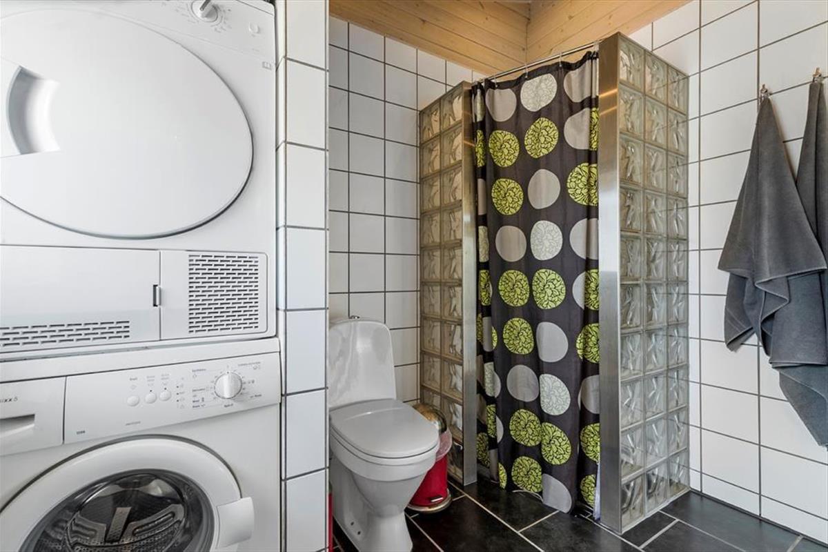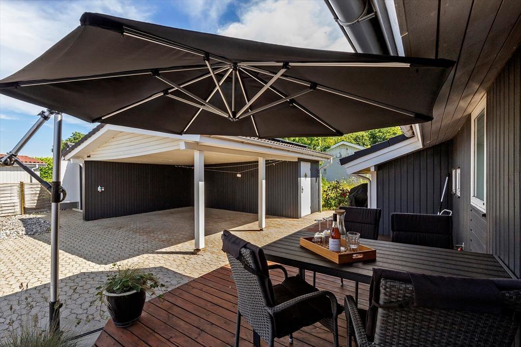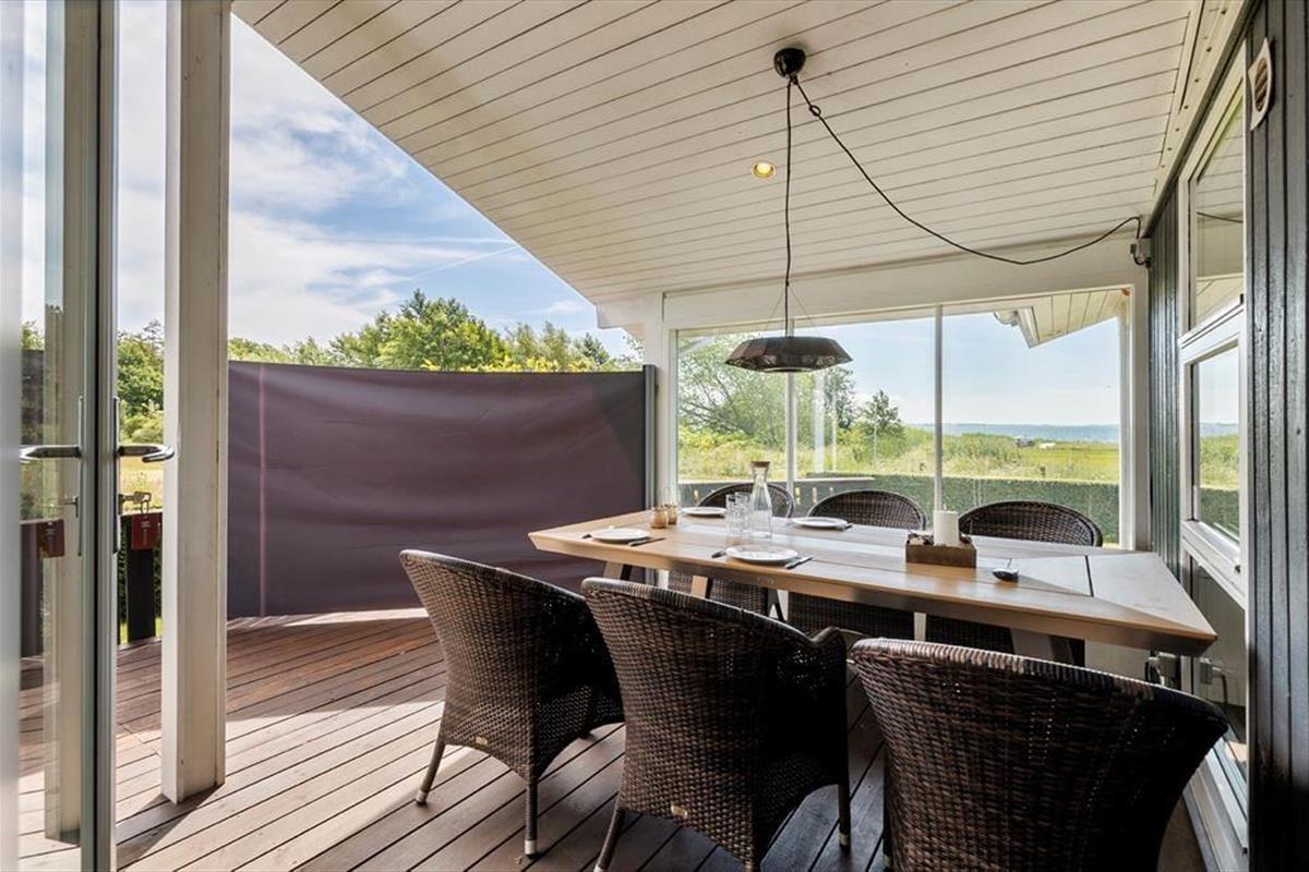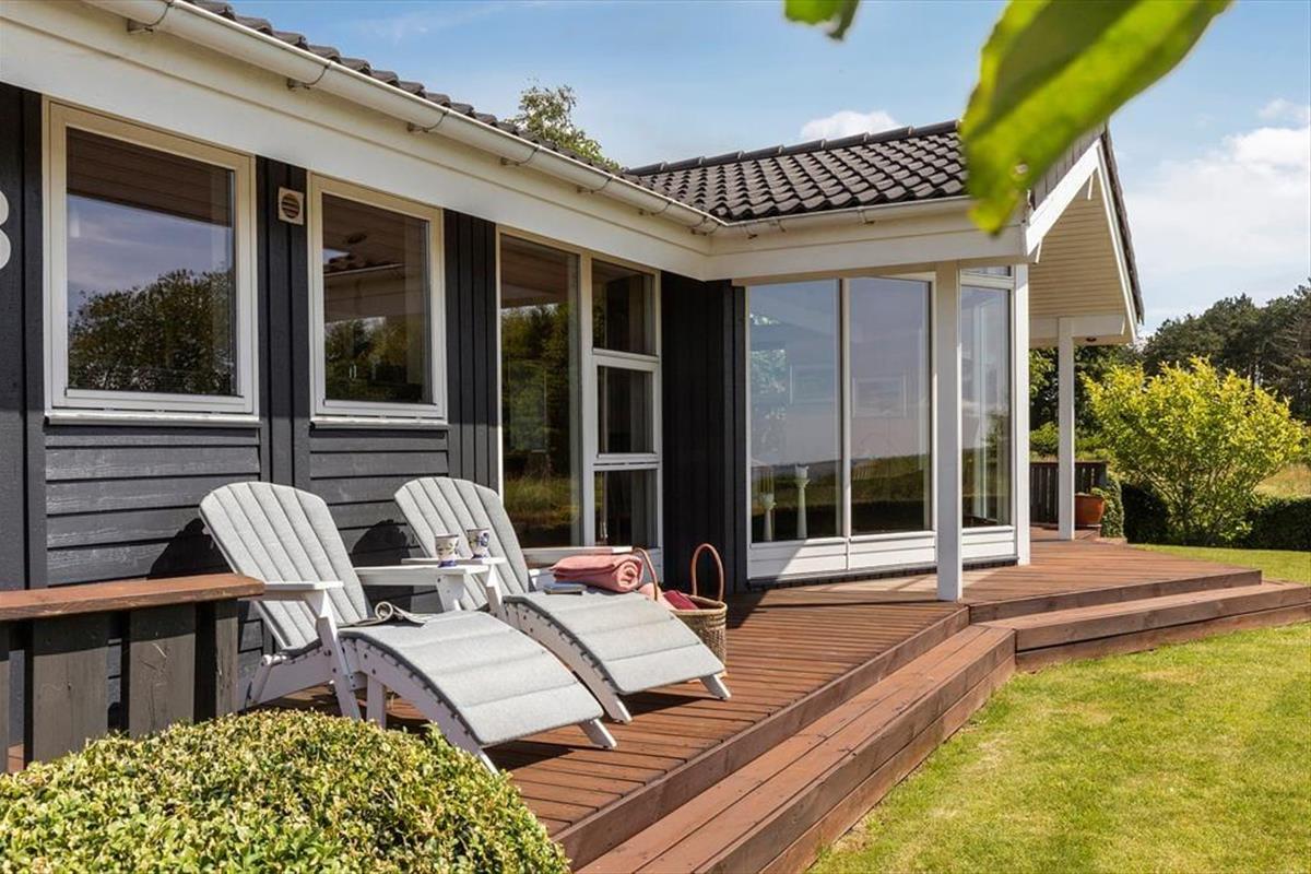 Unter freiem Himmel erfreust du dich an einer großen, teilweise überdachten Terrasse auf der du dich sonnen, mit der Familie grillen und dich beim Klang der Wellen entspannt zurücklehnen kannst. Der Garten bietet Platz zum Spielen und Erholen. Nur wenige Schritte trennen dich vom schönen Følle Strand mit wunderbar ruhigem Wasser - perfekt für morgendliche Bäder, lange Strandspaziergänge im Abendlicht und jede Menge Strandspaß mit den Kindern. Bei diesem tollen Ferienhaus ist dein nächster Nachbar die wunderschöne Natur.