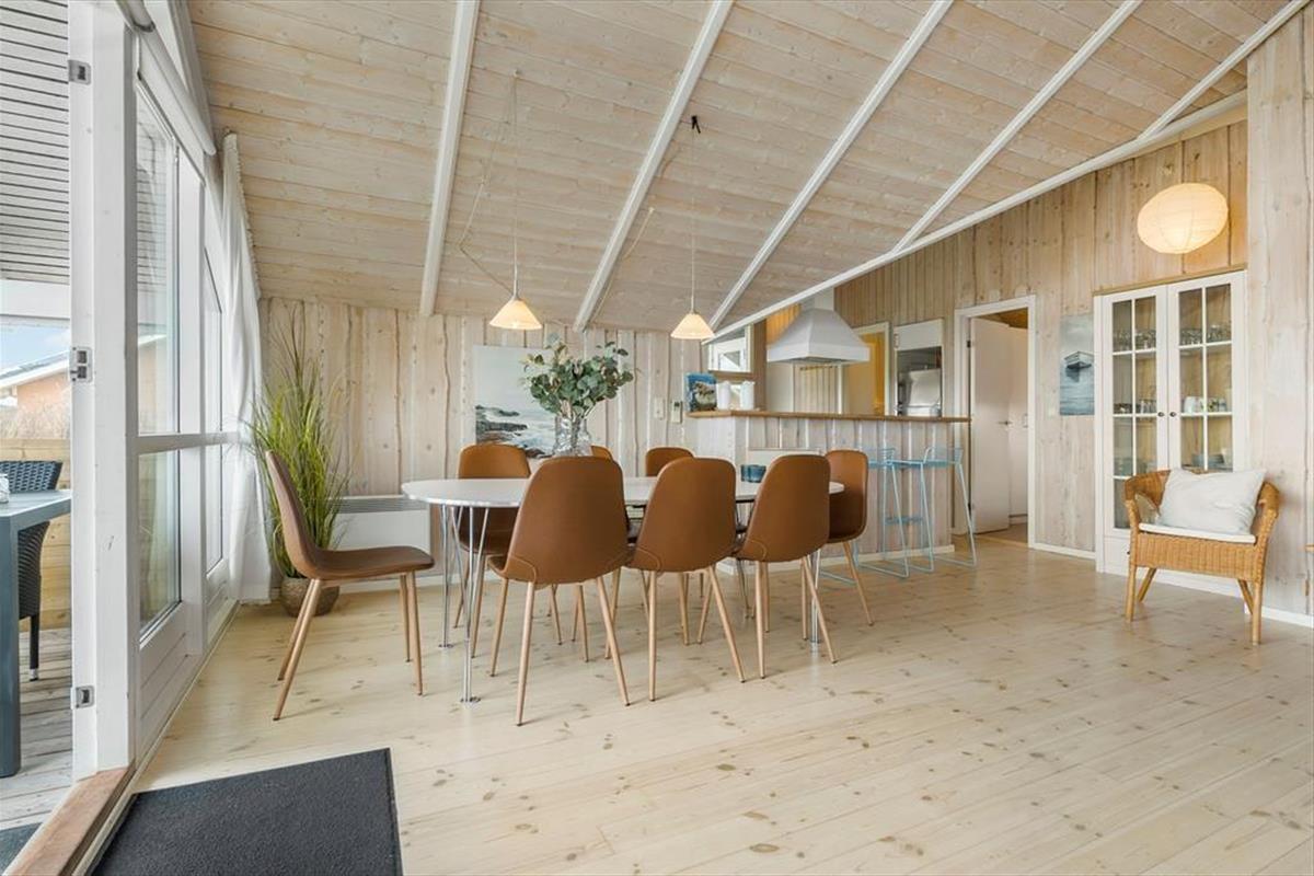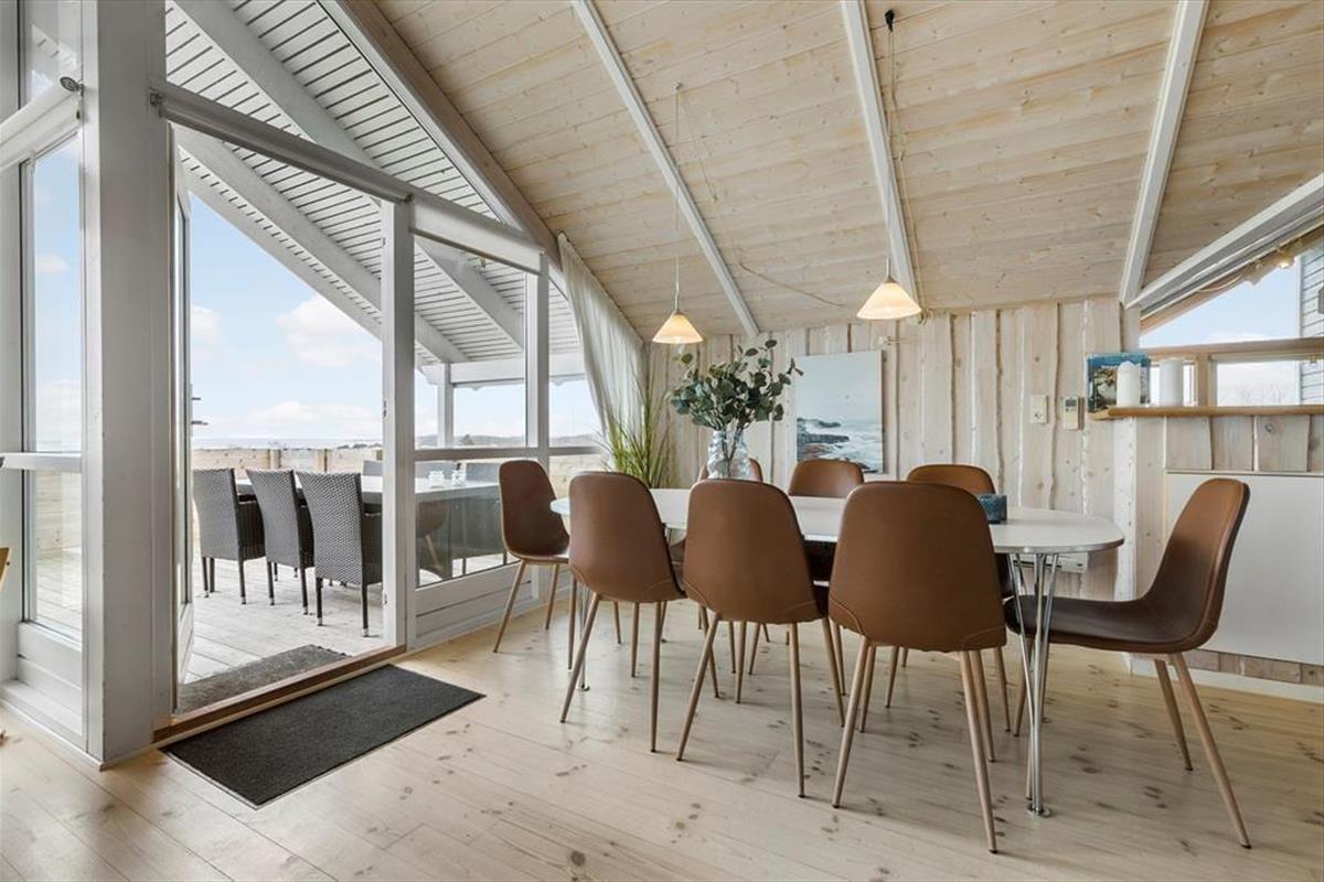 An der frischen Luft entfaltet sich das Urlaubsgefühl so richtig. Auf der großen Terrasse kannst du das Leben im Freien genießen – beim Grillen, Sonnenbaden oder mit dem Blick auf den Horizont, wo Meer und Himmel ineinander übergehen. Vom Haus aus hast du einen fantastischen Panoramablick auf das Wasser – ideal für einen ruhigen Morgen mit einer Tasse Kaffee bei bester Aussicht oder lange Sommerabende mit einem Glas Wein. Der Garten ist einladend und uneinsehbar, sodass du hier sowohl Entspannung in der Sonne als auch Platz zum Spielen für Kinder findest. Wenn du dem Meer noch näherkommen möchtest, erreichst du den Strand nach einem kurzen Spaziergang. Hier hast du Raum für gemeinsame Erlebnisse oder Zeit für dich selbst.