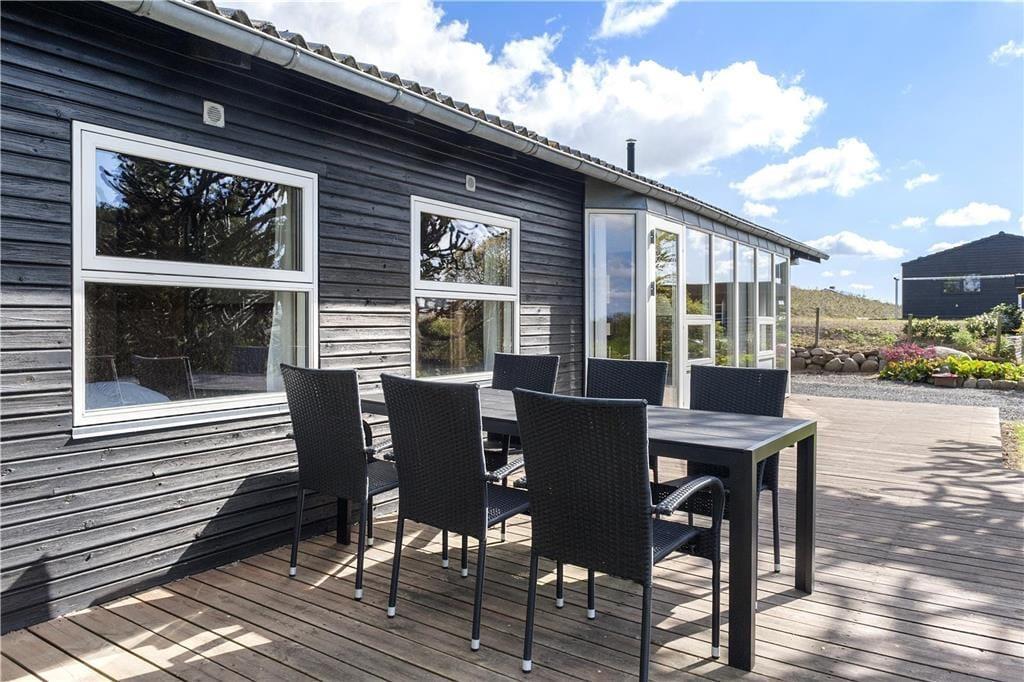 In bester Lage befindet sich dieses schöne und gepflegte Ferienhaus, das über Fußbodenheizung sowohl im Flur, als auch im Bad verfügt. Auch eine Waschmaschine ist vorhanden. Der gemütliche Wohnbereich ist mit DVD-Player, CD-Player, Stereoanlage und Radio sowie mit einem Fernseher ausgestattet, mit dem dänische Sender empfangen werden können. Außerdem mit einem elektronisch gesteuerten Pelletofen. Die zum Wohnzimmer hin offene Küche ist gut ausgestattet und verfügt über eine Geschirrspülmaschine. Im gepflegten Bad mit Fußbodenheizung befindet sich eine Duschnische. Das Haus hat drei Schlafzimmer, davon eines mit einem Doppelbett, eines mit zwei Einzelbetten sowie ein weiteres mit Etagenbetten. Für die kleinen Urlauber stehen Hochstuhl und ein Kinderbett zur Verfügung.