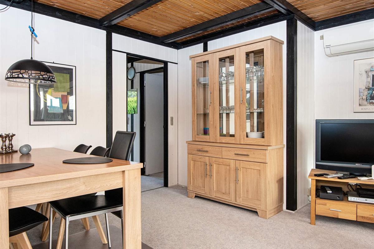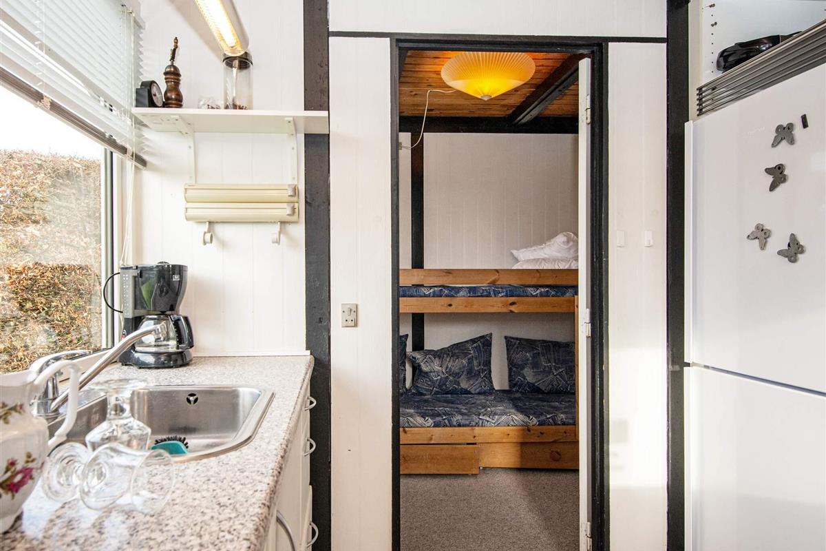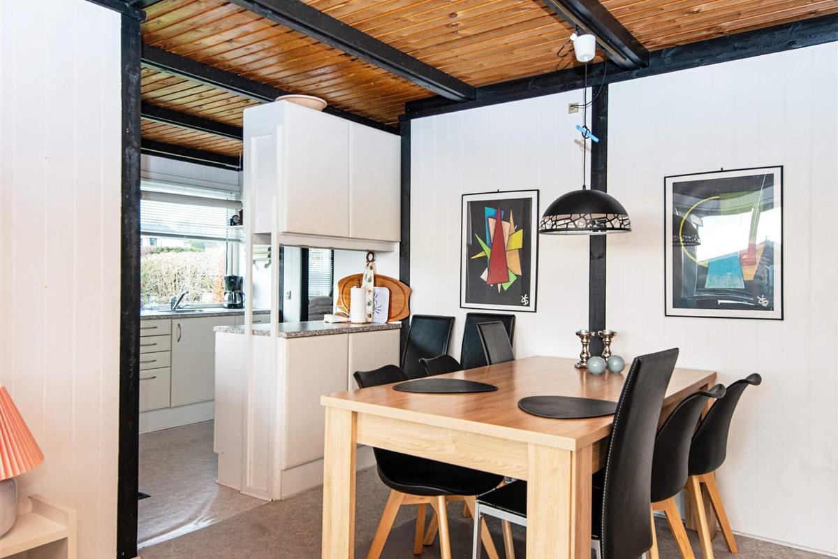 Vom Wohnbereich aus gelangen Sie auf die überdachte Terrasse, die zum Entspannen im Freien einlädt. Kinder können sich auf der Wiese mit dem Spielgerät vergnügen, während Erwachsene an der frischen Luft entspannen. Auf dem Grundstück steht ein Carport zur Verfügung, der einen praktischen Unterstand für Ihr Fahrzeug bietet. Nur etwa 300 m vom Haus entfernt liegt der flache Sandstrand von Følle, ideal zum Schwimmen und für Familienaktivitäten. Während der Sommersaison stehen unseren Gästen Badestege zur Verfügung.