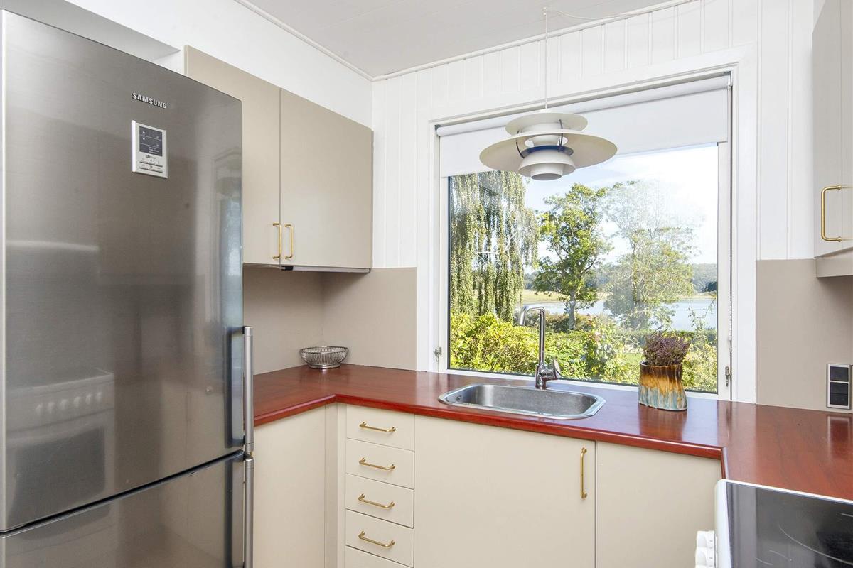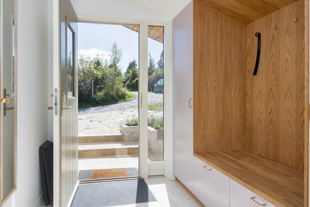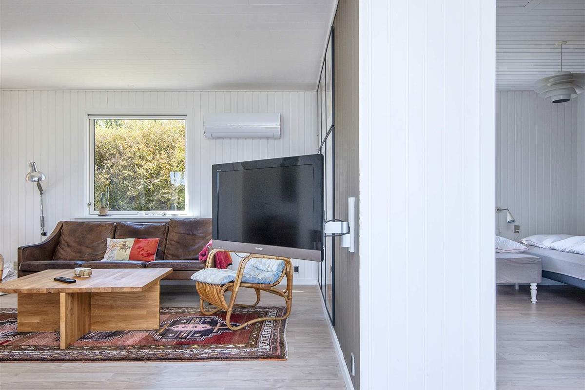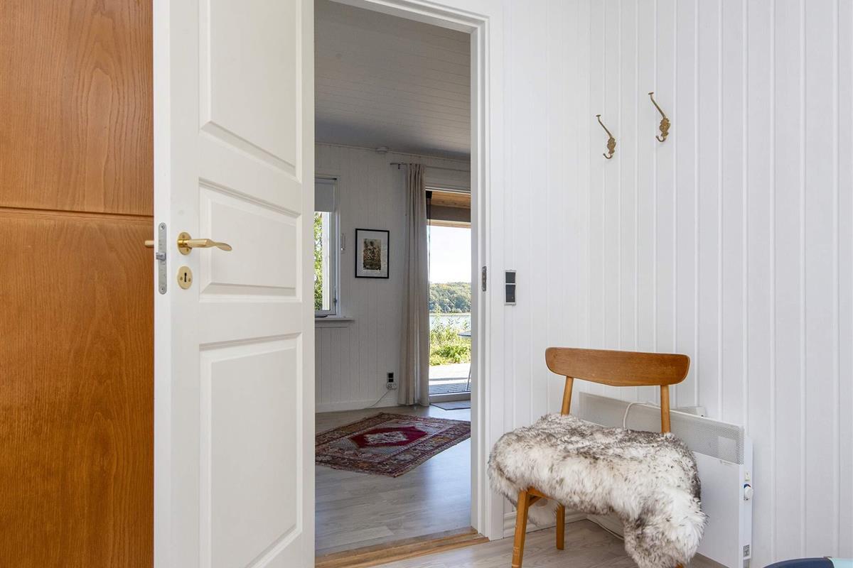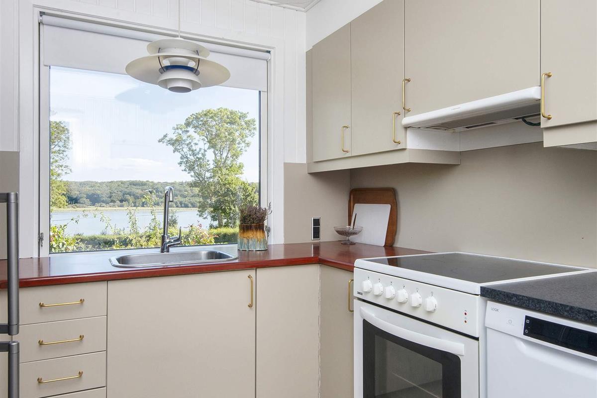 Renoviertes Ferienhaus mit Panoramablick auf das Wasser bei Følle Vig! Gemütliches Haus mit Platz für max. sechs Personen. Hier können Sie es sich vor dem Feuer im Holzofen gemütlich machen und dabei die Aussicht zum Nationalpark Mols Bjerge genießen. Sie können den Tag am Wasser direkt unterhalb des Ferienhauses verbringen, wo Sie Ihr eigenes Kanu oder SUP mitbringen können. Wenn Sie ein kurzes Stück laufen, erreichen Sie schnell einen schönen Badestrand.
