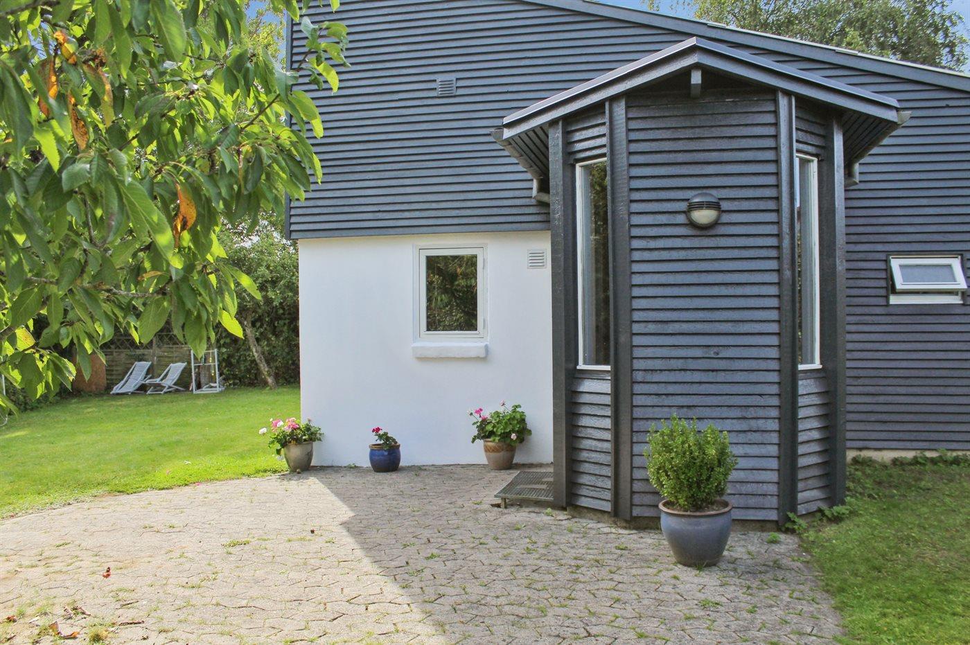 Charmant vakantiehuis in Rønde, 100 meter van zee, met modern comfort en overdekt terras.