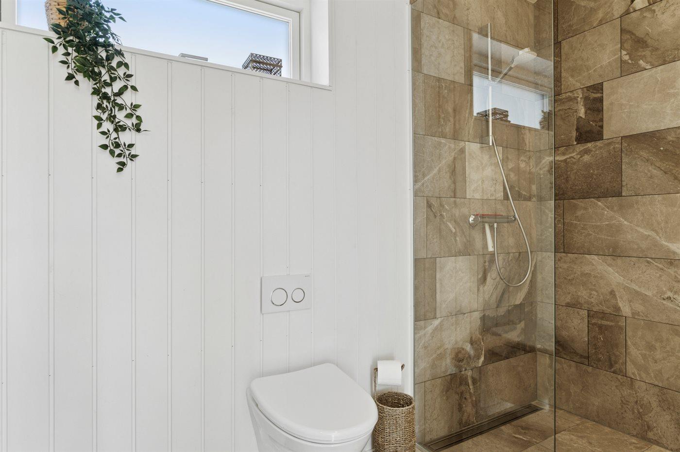 Er is 2 badkamers met douchehok en 2 toiletten. Er is vloerverwarming in 2 van de badkamers.