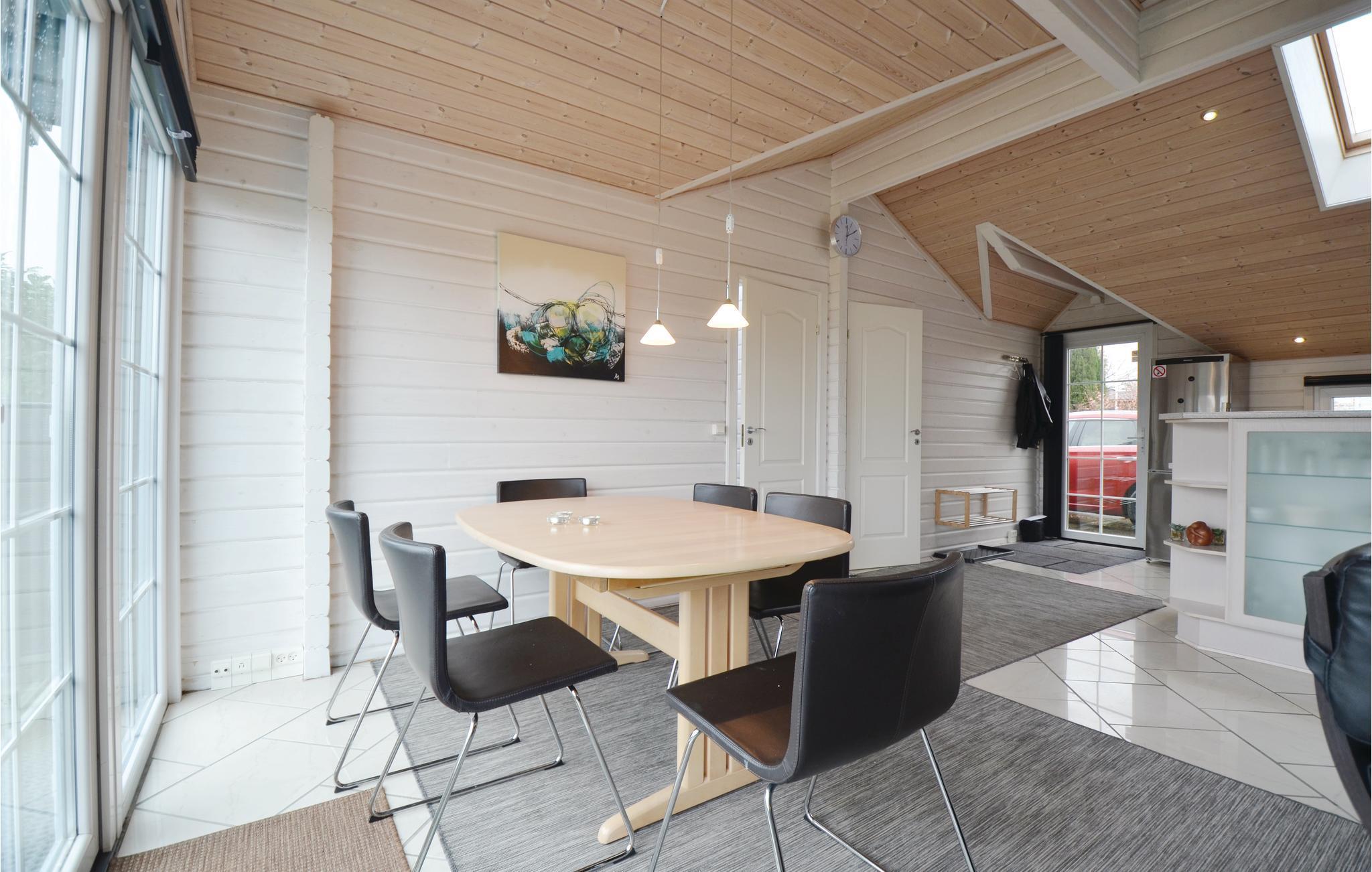 Deze charmante blokhut heeft alles wat je nodig hebt voor een ontspannen vakantie vol gezelligheid. Het warme en uitnodigende interieur met betegelde vloeren en comfortabele meubels zorgt voor een gezellige sfeer. De goed uitgeruste keuken is direct verbonden met de woonkamer, waar je kunt ontspannen met bordspellen of een filmavond na een bewogen dag. Een whirlpool is beschikbaar voor die speciale momenten van welzijn, ideaal om het leven van alledag achter je te laten.