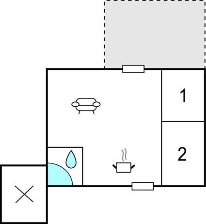 Woonkamer met open keuken - 2 Slaapplaatsen. (Opklapbed(den) of matras(sen)).
