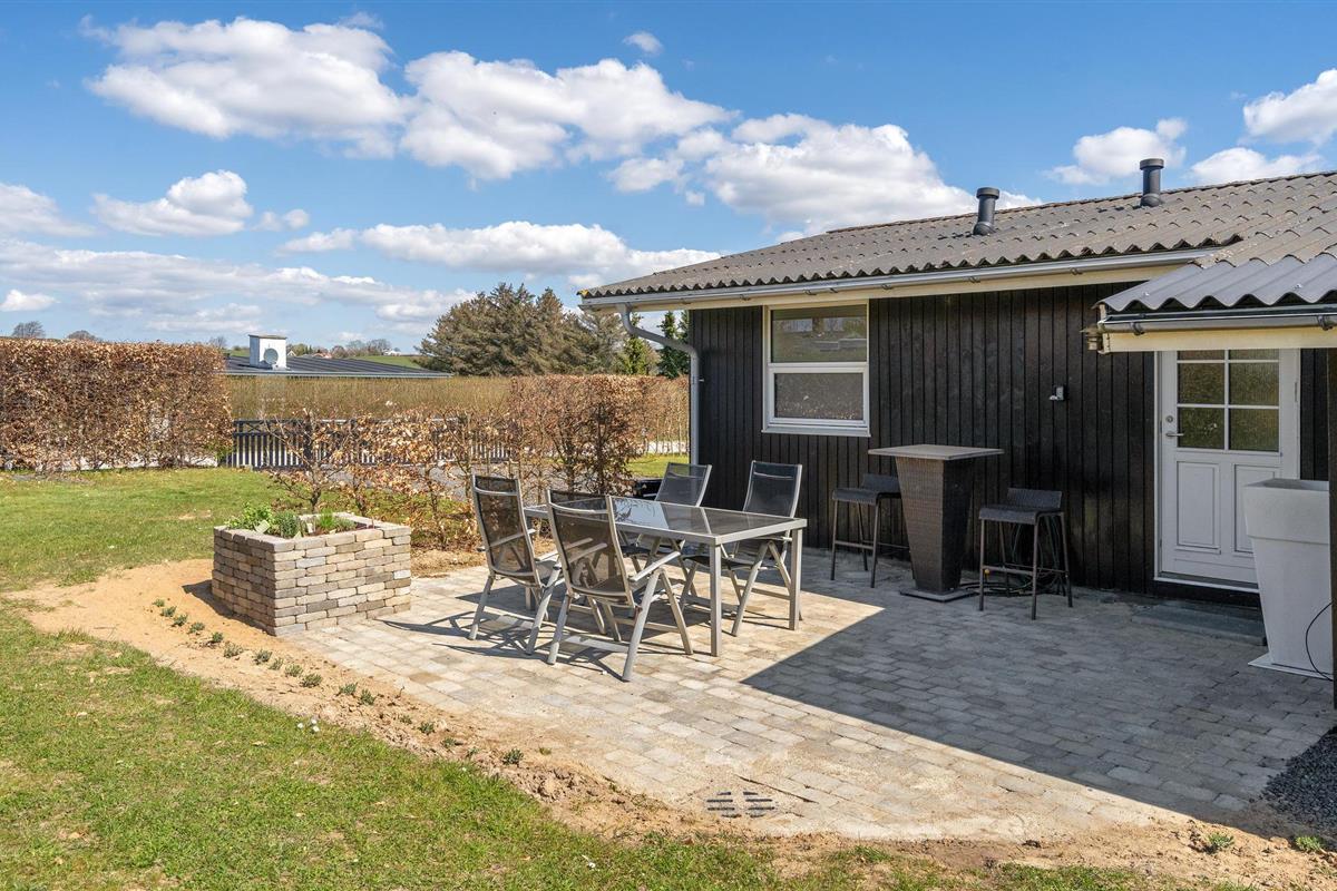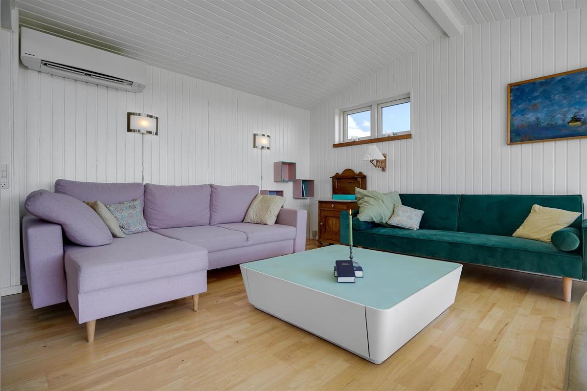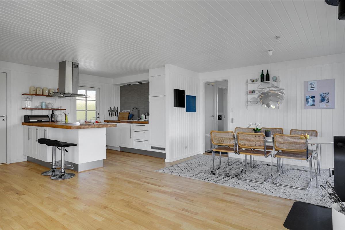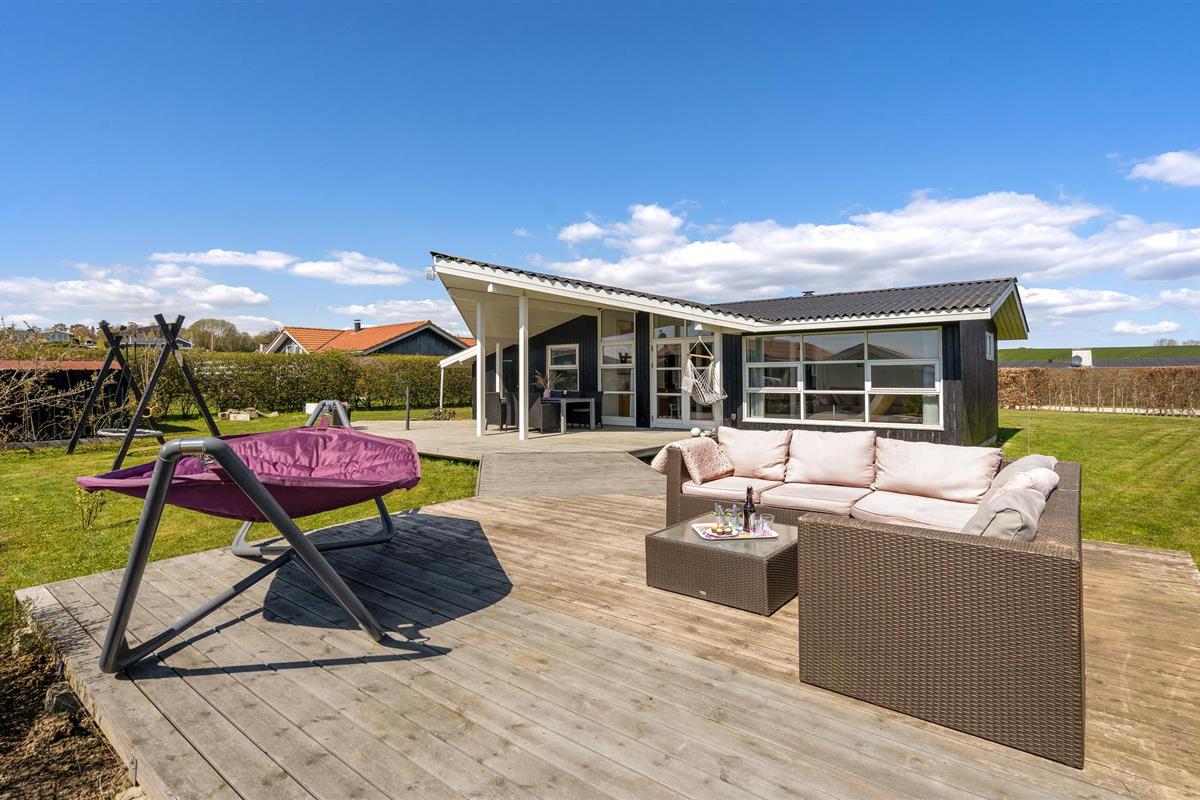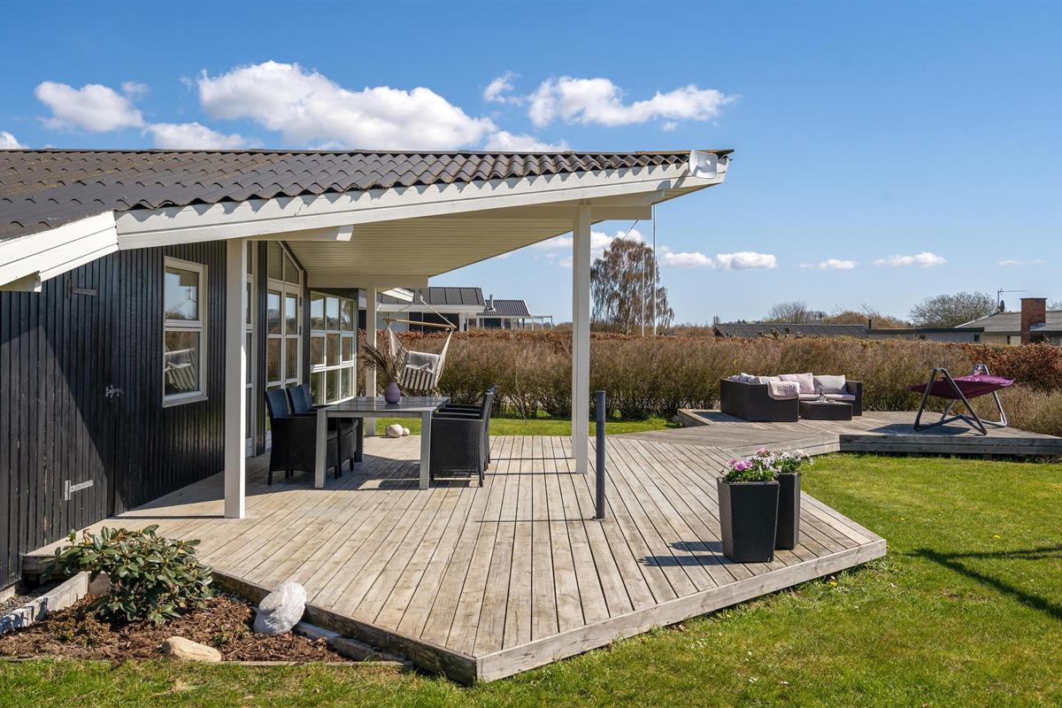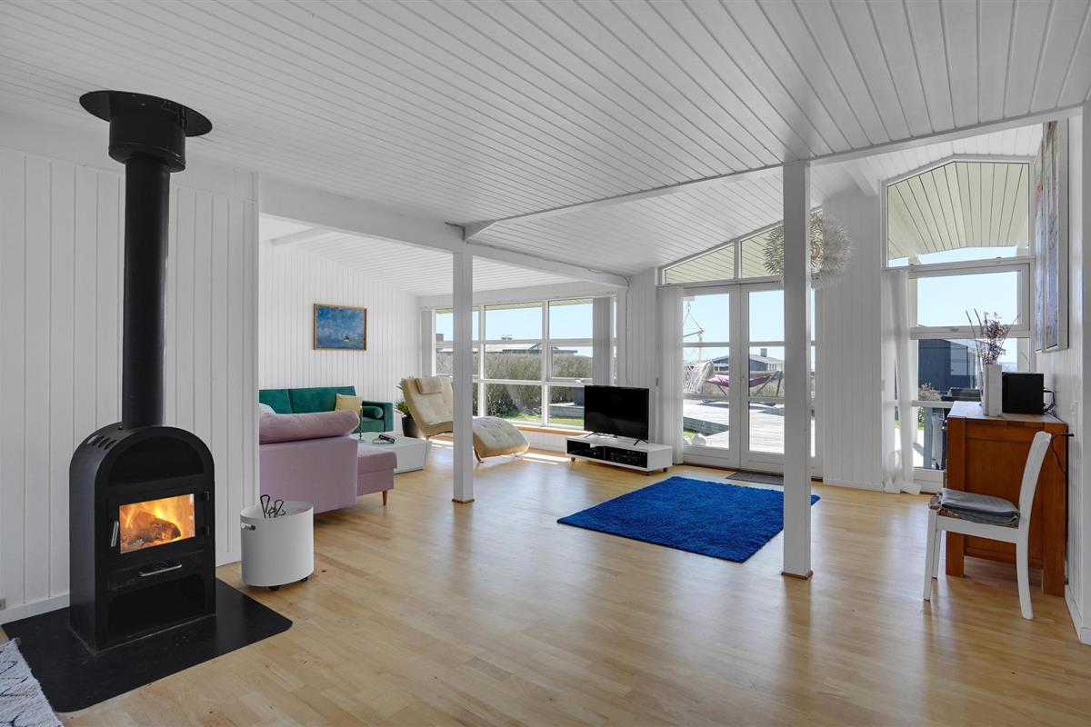 Modern vakantiehuis in Følle Strand met open haard, grote terrassen en dicht bij het strand.