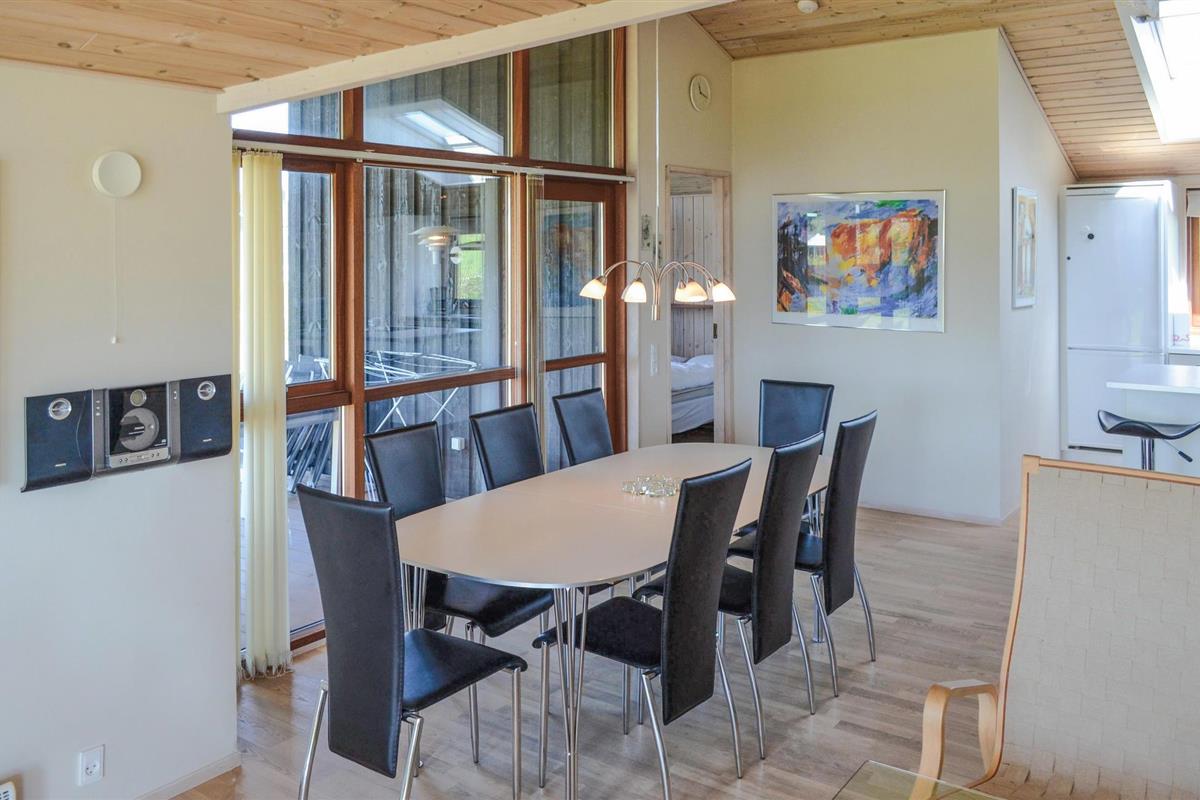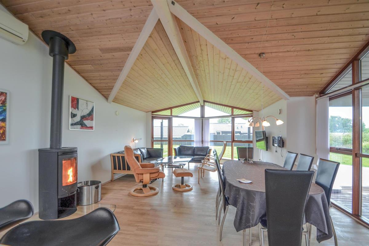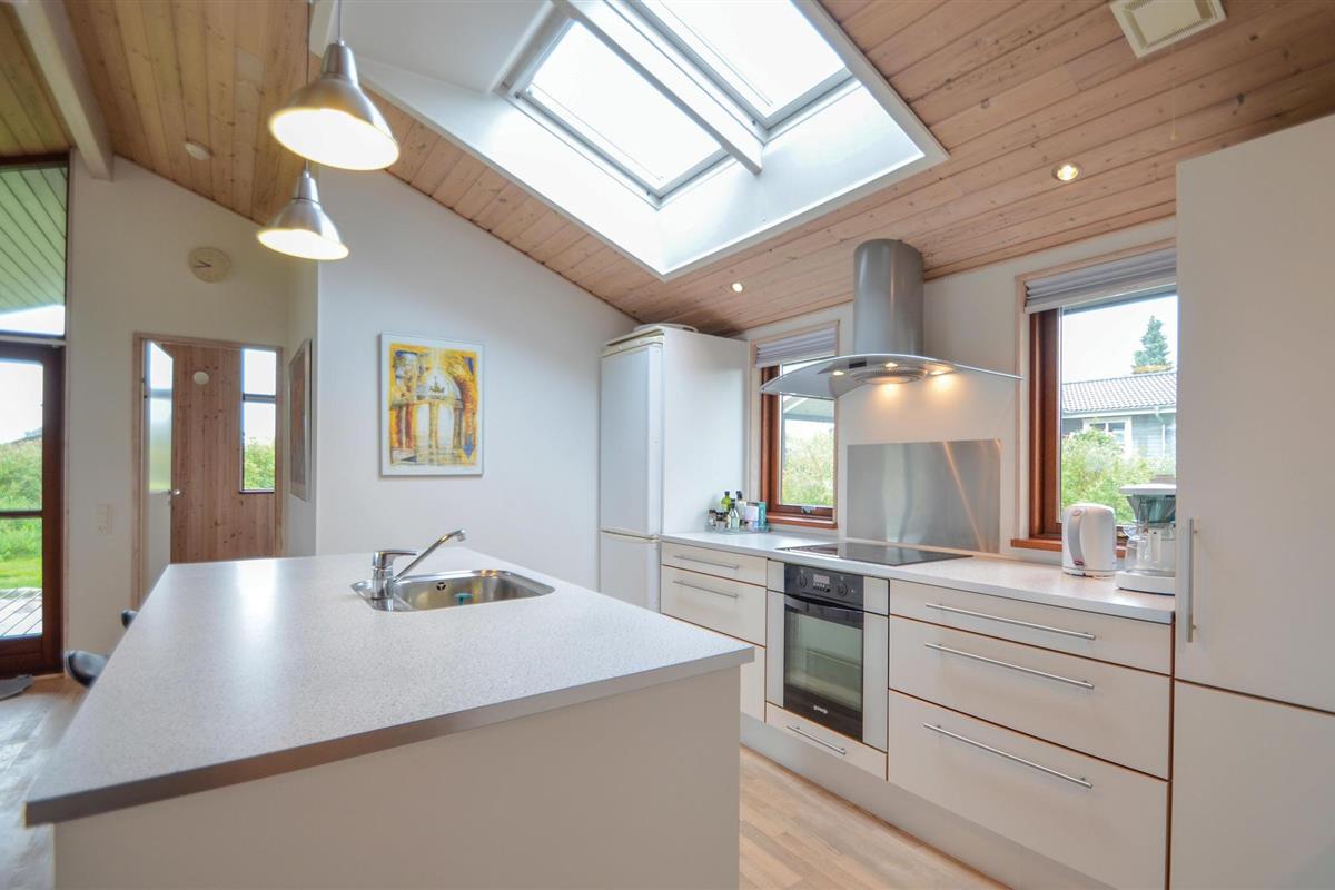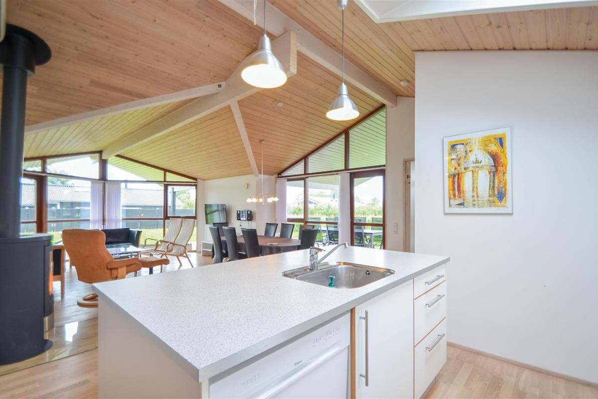 Modern en mooi huis gebouwd met de beste materialen en spannend ingericht met veel details en een mooie lichtinval. Het is goed uitgerust en ingericht met mooi meubilair. Door de grote ramen kunt u zich ontspannen in het huis en toch dicht bij de natuur voelen. Op het grote terras kunt u van 's morgens tot 's avonds genieten van het buitenleven. Ontbijt op het terras hoort bij elke vakantie. Het gebied is erg populair met zijn mooie strand en korte rijafstand naar de stad Rønde en de vele spannende attracties in Oost-Jutland, waaronder de golfbaan Kålø.