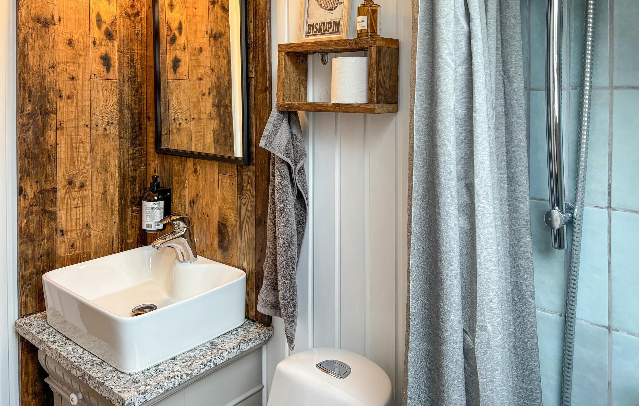 Badkamer 3m2 (nr. 1) - Toilet: warm en koud water. Douche