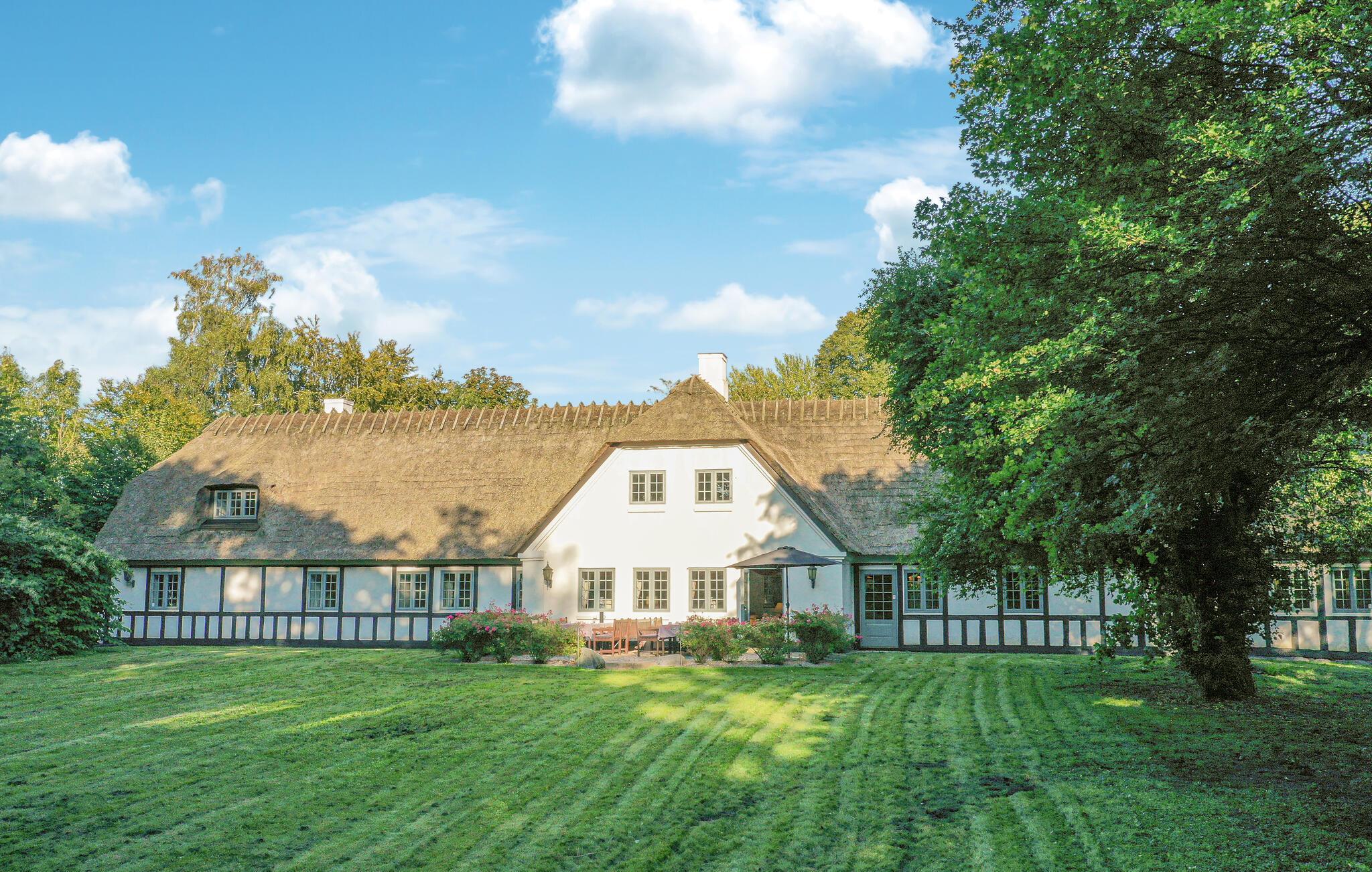 Ervaar luxe en natuur in een prachtig vakwerkhuis aan Gamborg Fjord, ideaal voor grote groepen en ontspanning.