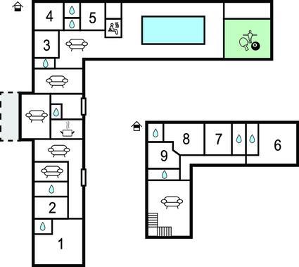 Badkamer (nr. 9) - Toilet: warm en koud water. Douche