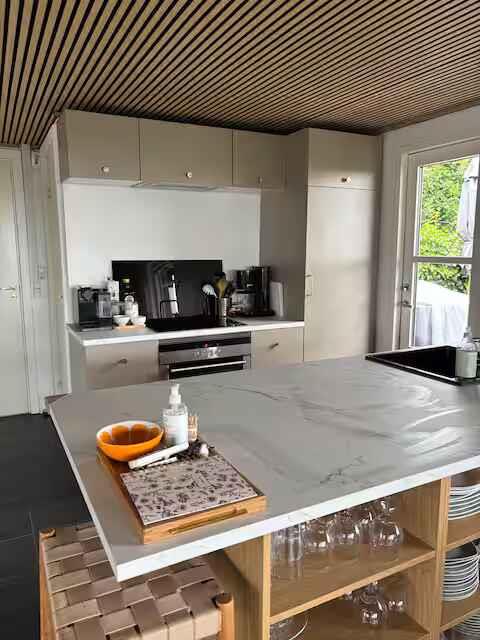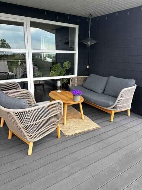 Gezellig zomerhuis met een prachtig zeezicht, drie slaapkamers en zes slaapplaatsen. De lichte, open woonkeuken vormt een eenvoudige en uitnodigende basis voor de vakantie. Het huis ligt in een rustige vakantiewijk op korte loopafstand van de kust, waardoor het buitenleven dichtbij en toegankelijk is. Binnen vind je een infraroodsauna voor extra ontspanning en een houtkachel die voor warmte en sfeer zorgt in de koudere maanden. De inrichting is eenvoudig en functioneel, zodat de dagen kunnen worden besteed aan rust in plaats van praktische taken. Een bijbehorend bijgebouw biedt vier extra slaapplaatsen en maakt het huis flexibel voor zowel gezinnen als vrienden. De grote tuin heeft meerdere terrassen en veel ruimte voor spel, ontspanning en maaltijden. Op enkele minuten lopen ligt het strand met een zwemsteiger in het seizoen, waardoor het water een vanzelfsprekend deel van de vakantie wordt. De omgeving biedt rust, mooie natuur en goede mogelijkheden voor wandel- en fietstochten. Kustpaden, kleine bosgebieden en uitzichtpunten maken het gemakkelijk om de archipel van Zuid-Fyn van dichtbij te beleven. Hier vind je zowel stilte als open landschappen die uitnodigen tot pauzes en uitstapjes. Faaborg ligt dichtbij en biedt mooie stranden, goede winkelmogelijkheden, gezellige eetgelegenheden en een charmante haven. De stad heeft culturele bezienswaardigheden, musea en kleine winkels, en de veerboten maken dagtochten naar de eilanden eenvoudig. Svendborg ligt op ongeveer een half uur afstand en biedt nog meer activiteiten, maritieme omgevingen en belevenissen. De combinatie van zee, natuur, rust en nabij stadsleven maakt dit gebied ideaal voor gasten die zowel ontspanning als afwisseling wensen. Het huis vormt een veilige en uitnodigende uitvalsbasis voor dagen vol samenzijn. Let op: Niet te huur voor commercieel gebruik.