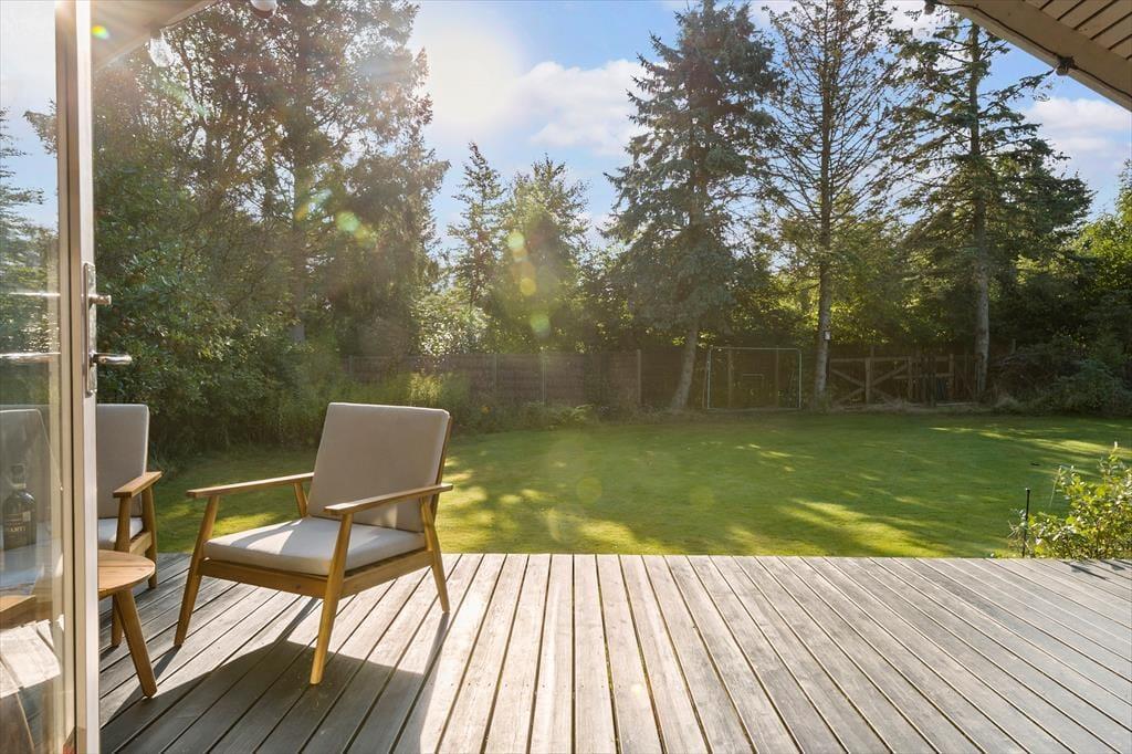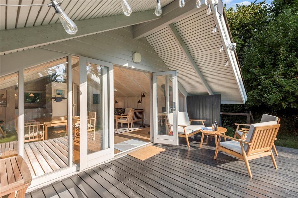 Die schöne Holzterrasse deines Mietobjektes erweist sich an sonnigen Tagen als herrlicher Aufenthaltsplatz. Sobald es am Abend kühler wird, machst du es dir mit deiner Familie unter die Terrassenüberdachung gemütlich. Was könnte es Schöneres geben, als einen langen Urlaubstag mit deinem Lieblingsgetränk im Abendlicht ausklingen zu lassen und dabei die herrliche Ruhe und gemütliche Stimmung zu genießen? Dein Ferienhausgrundstück bietet beste Möglichkeiten für Naturerlebnisse und Entspannung. Die Rasenfläche lädt zum Spielen ein. Lediglich 300 Meter trennen dich und deine Lieben von der Küste. Der Wald und der kinderfreundliche Strand sind somit gut erreichbar.
