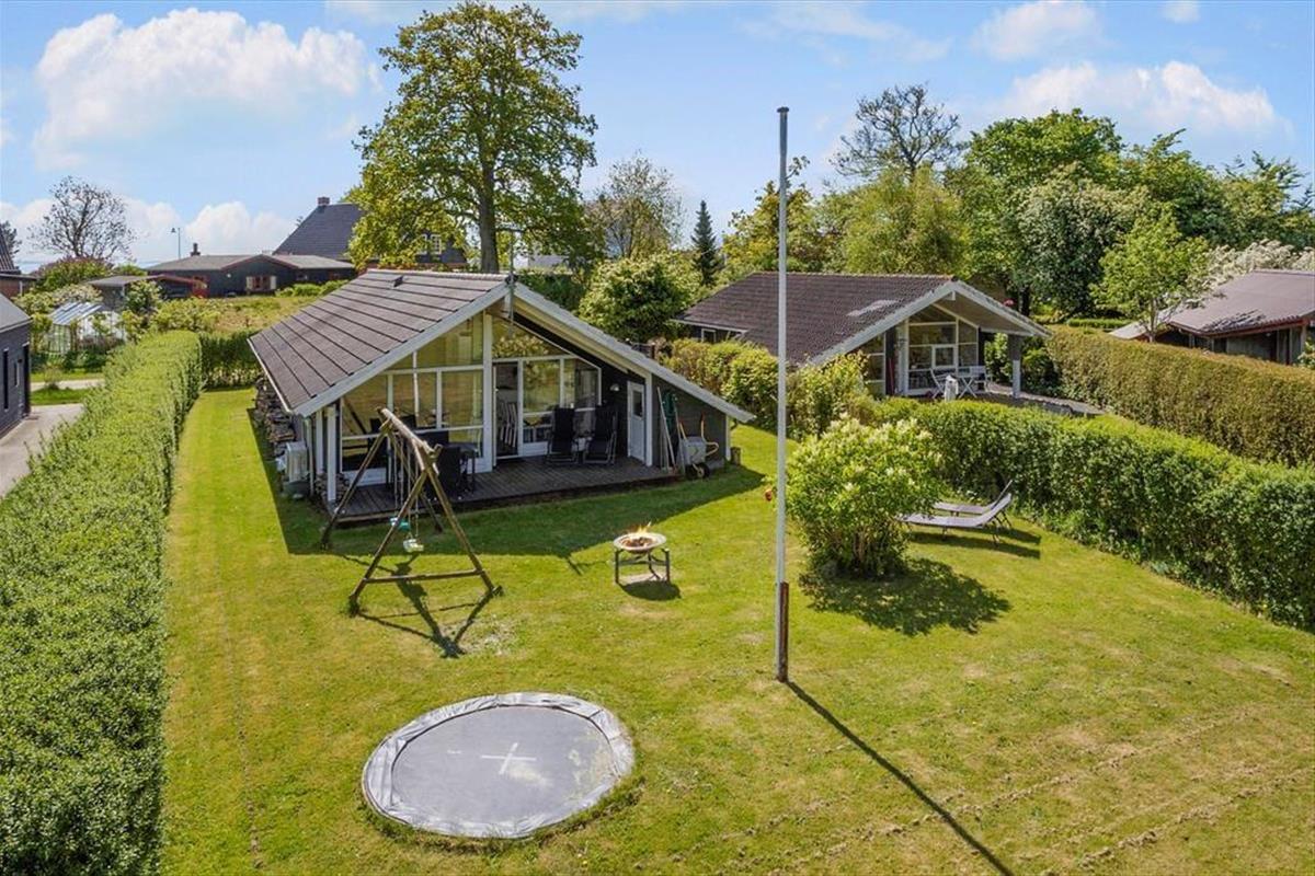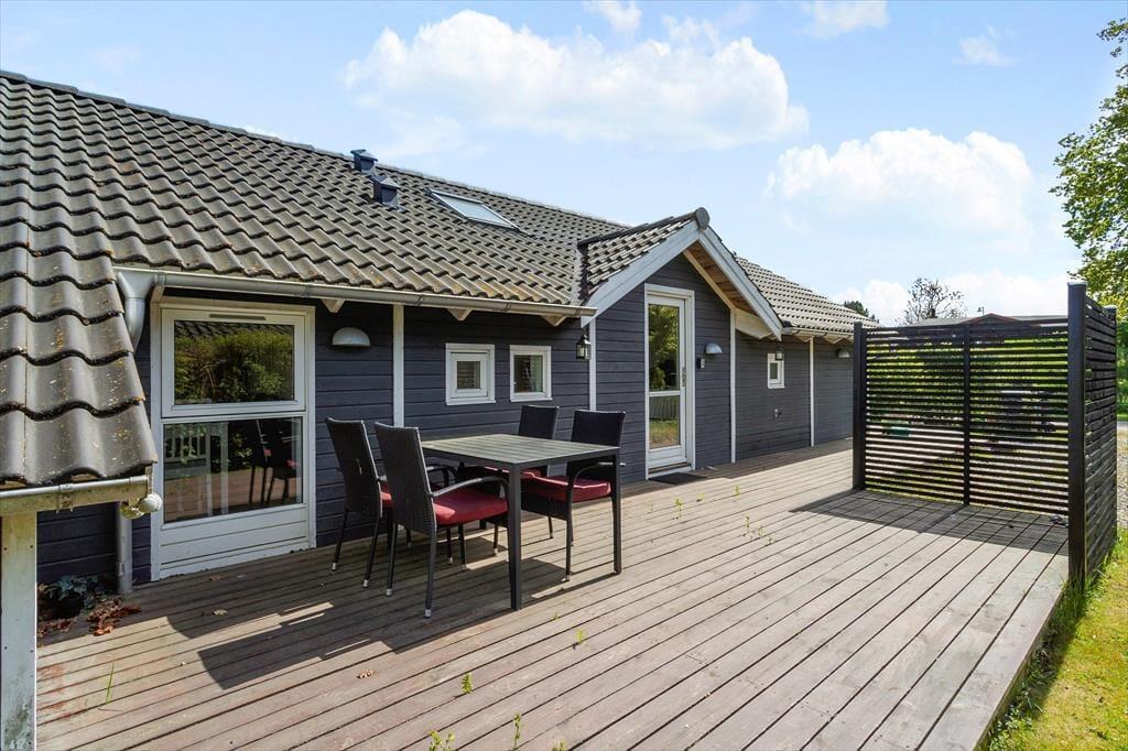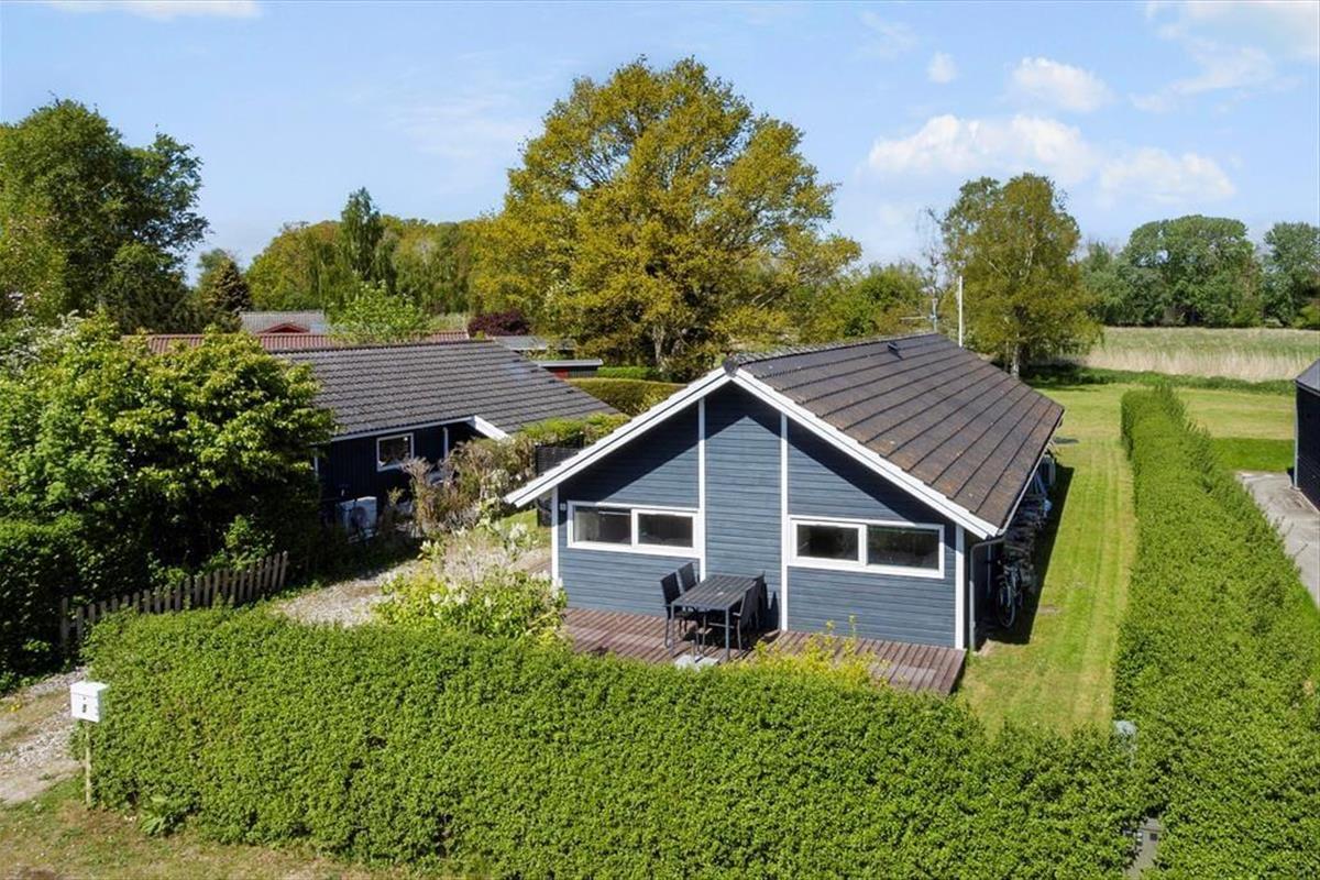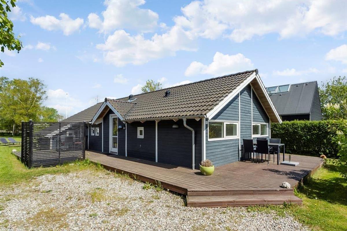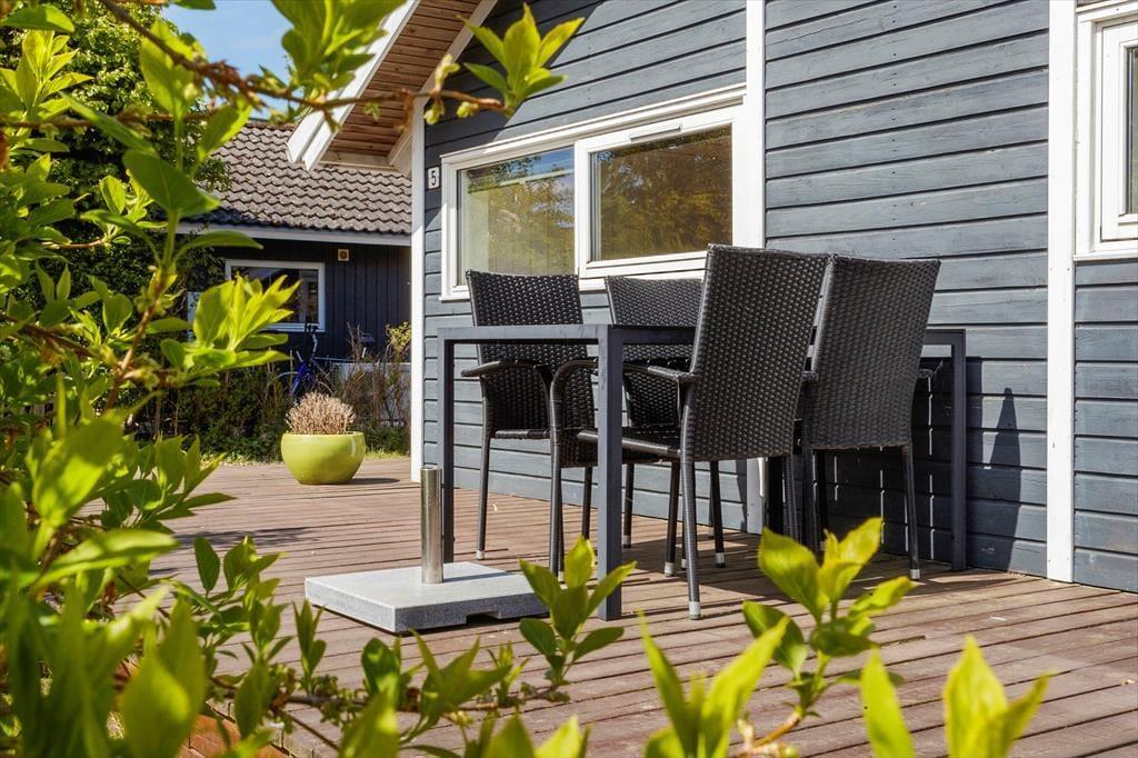 Der Garten hinter dem Haus blickt auf eine kleine Wiese, wo der Faxe å fließt. Das Haus verfügt über mehrere Terrassen, auf denen Sie die warmen Tage genießen können. Wenn die Abende kühler werden, können Sie unter den überdachten Teil der Terrasse beim Wohnzimmer ziehen. Gibt es etwas Schöneres, als dort zu sitzen und die Dunkelheit und Ruhe bei einem Glas Wein zu genießen? Wein oder eine gute Tasse Tee oder Kaffee? Hier finden Sie Raum für Gemütlichkeit, Entspannung und Naturerlebnisse. Vom Haus aus sind es nur 200 Meter bis zur Küste und es liegt in der Nähe eines Waldes und eines schönen kinderfreundlichen Strandes.