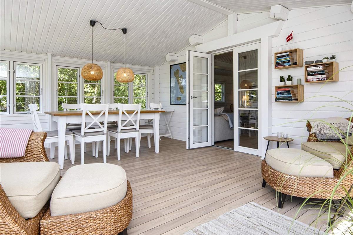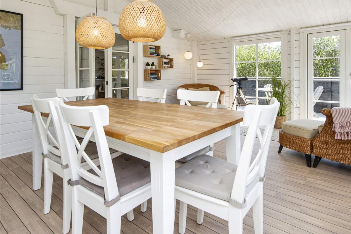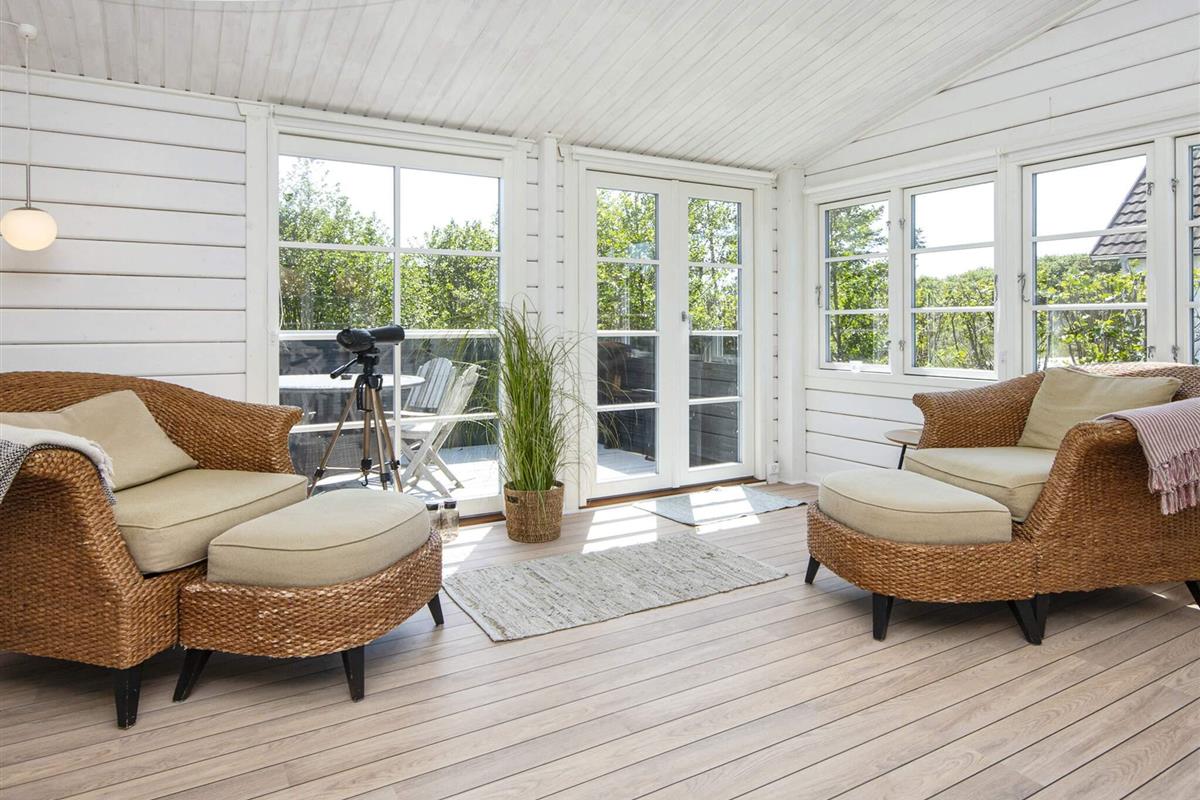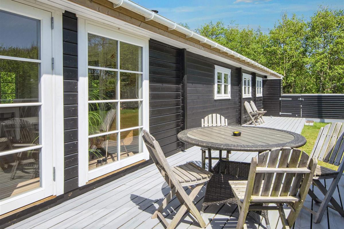 Hell und ansprechend eingerichtetes Ferienhaus auf der Nordseeinsel Fanø. Liegt auf einem großen und schön abgeschirmten Naturgrundstück mit großer Holzterrasse und viel Platz für spielende Kinder.
