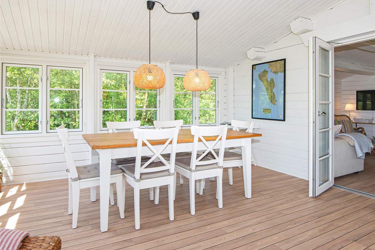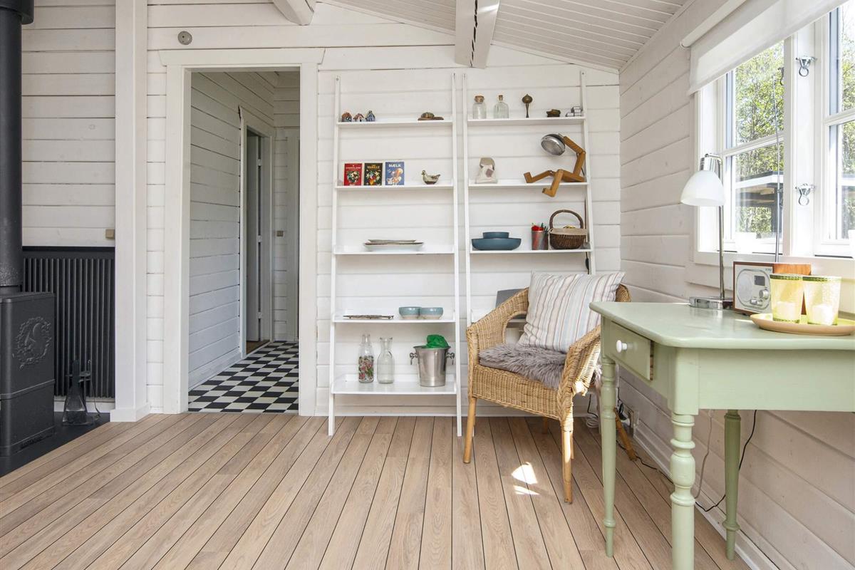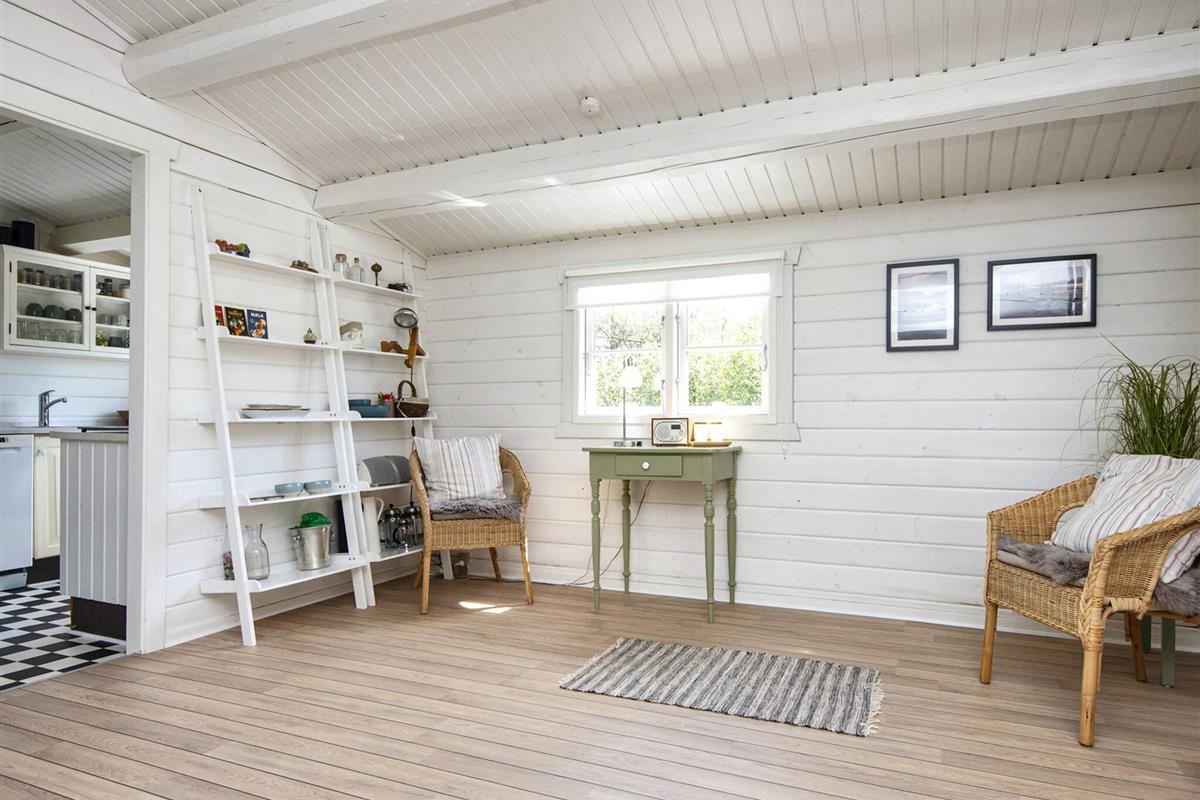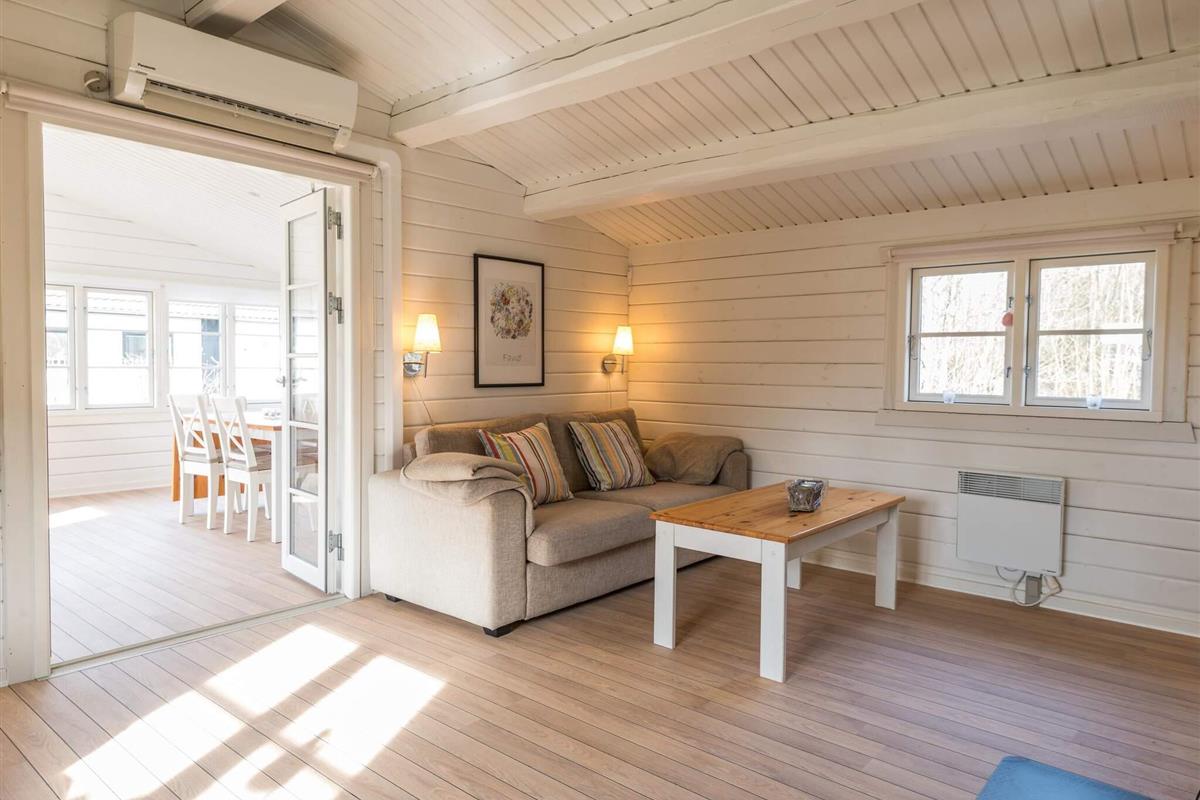 Das wohnlich und sehr hell eingerichtete Ferienhaus bietet fünf Schlafplätze in Betten, verteilt auf drei Schlafzimmer. Modernes Bad von 2016 im Haus sowie helle Küche und gemütliches Wohn- und Esszimmer mit einem Holzofen für die kühleren Tage. Zweiter, sehr heller Wohnbereich im Haus mit Fenstern rundum und Zugang zur Terrasse. Im Außenbereich große, schöne Terrassenfläche, die teilweise überdacht ist.