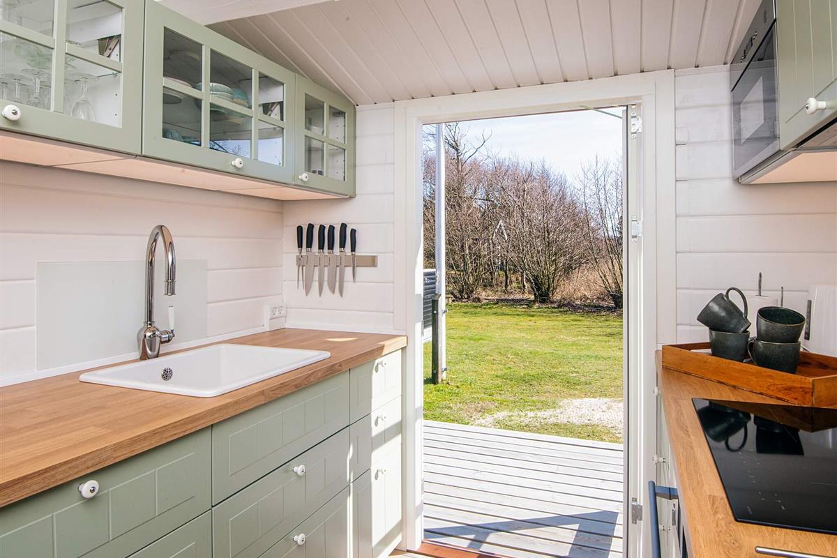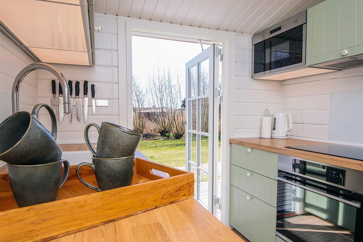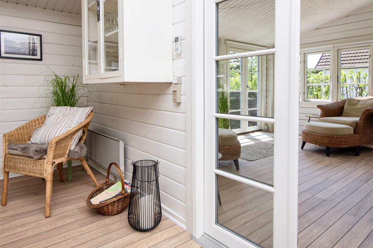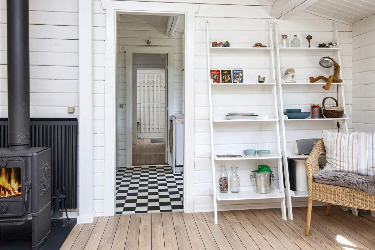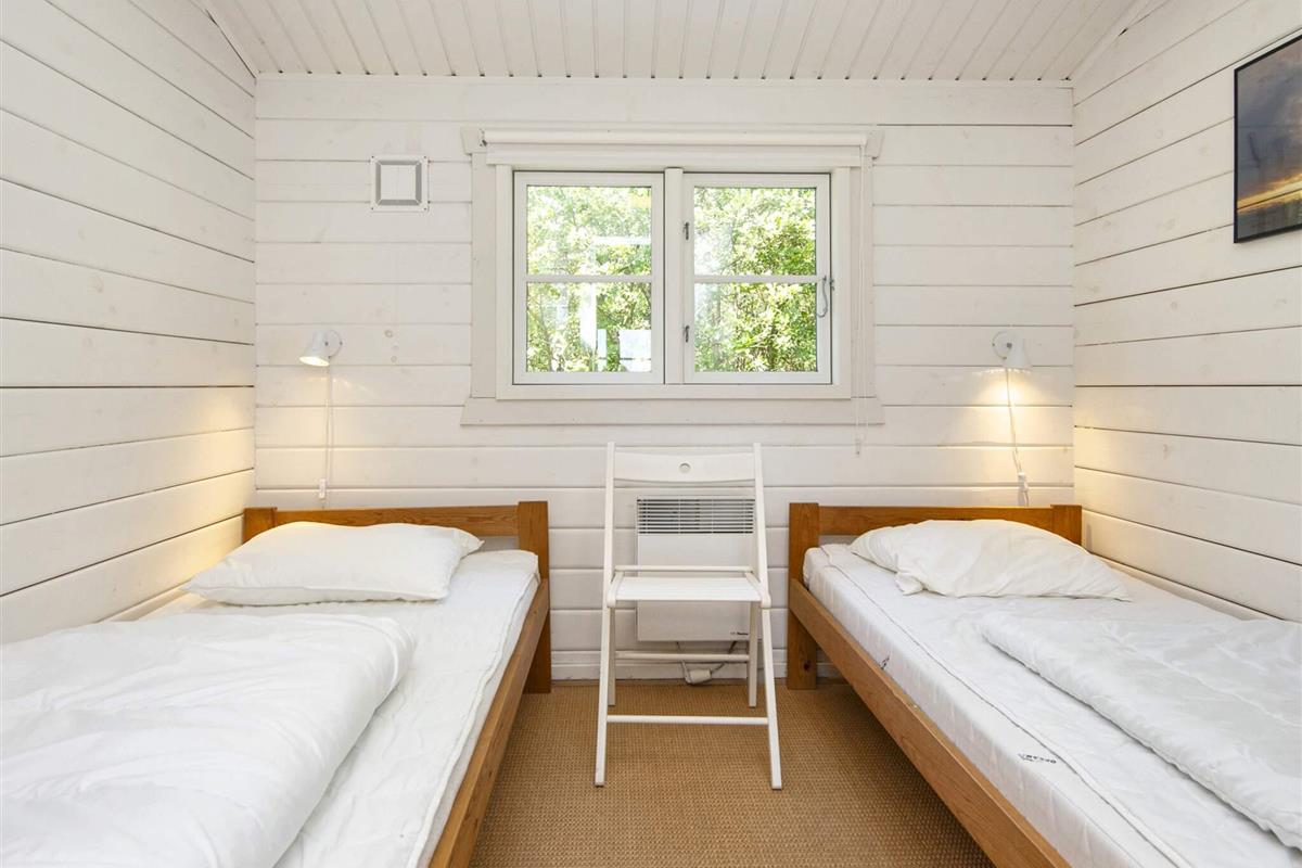 Das wohnlich und sehr hell eingerichtete Ferienhaus bietet fünf Schlafplätze in Betten, verteilt auf drei Schlafzimmer. Modernes Bad von 2016 im Haus sowie helle Küche und gemütliches Wohn- und Esszimmer mit einem Holzofen für die kühleren Tage. Zweiter, sehr heller Wohnbereich im Haus mit Fenstern rundum und Zugang zur Terrasse. Im Außenbereich große, schöne Terrassenfläche, die teilweise überdacht ist.