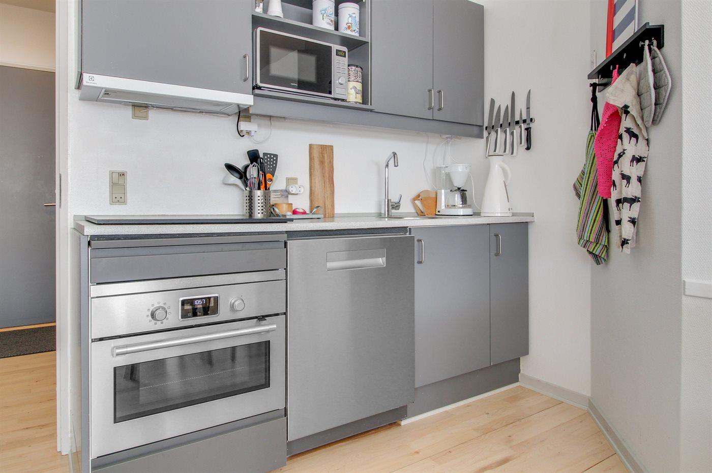 De keuken is uitgerust met koelkast Er is 4 inductiekookplaten, heteluchtoven, magnetron en vaatwasser.