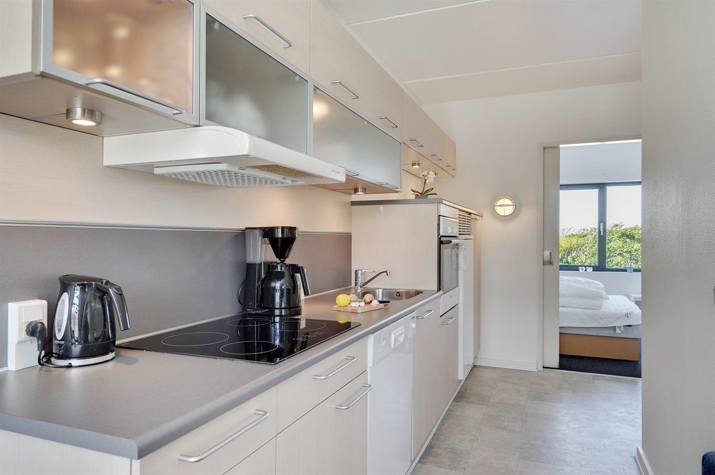 De keuken is uitgerust met koelkast Er zijn 4 keramische kookplaten, heteluchtoven, magnetron en vaatwasser.