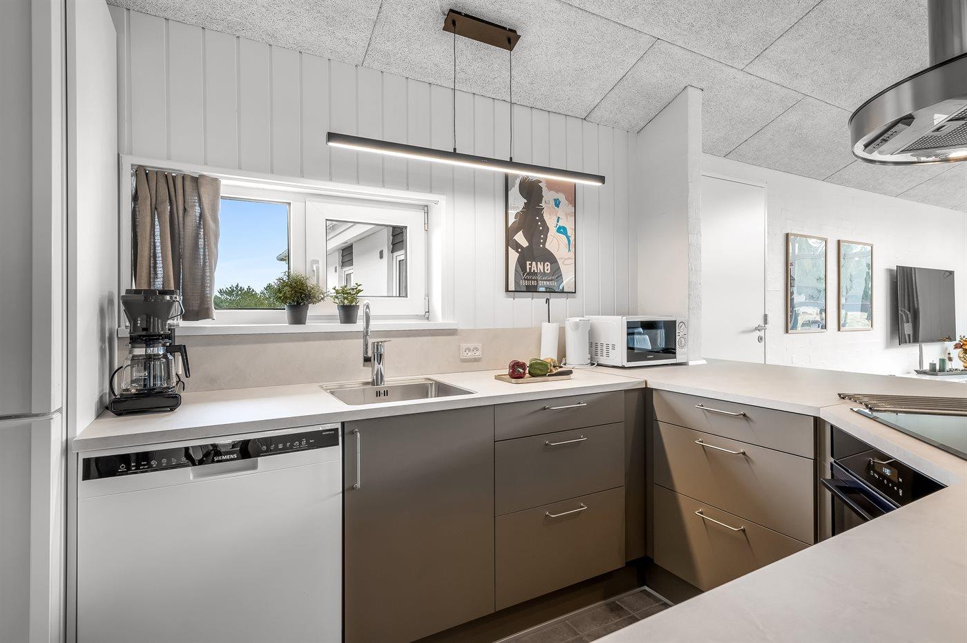 De keuken is uitgerust met koelkast Er zijn 4 keramische kookplaten, heteluchtoven, magnetron en vaatwasser.