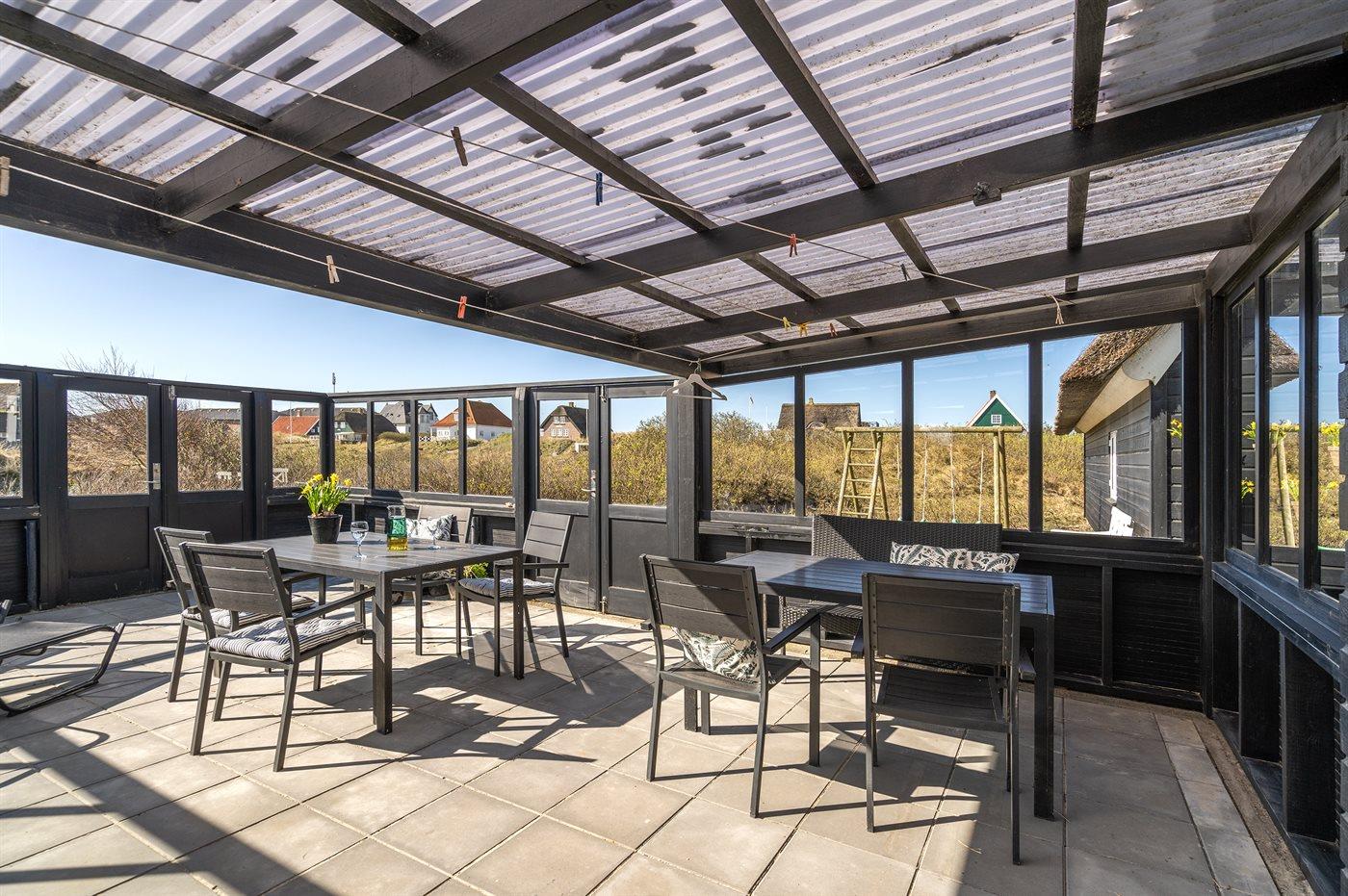 De vakantiewoning is gelegen op een 926 m² groot Duingrond. Afstand tot de zee 100 m. Dichtstbijzijnde winkel 500 m. Er is een golfbaan op een afstand van 20 m. Bij de vakantiewoning hoort 25 m² terras. Waarvan in totaal 25 m² beschut terras. Zonneterras. Parkeerplaats bij het huis.