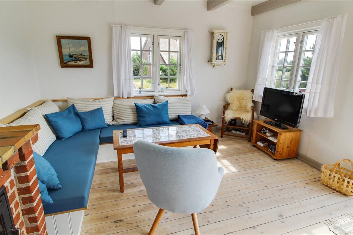 Charmant vakantiehuis op Fanø met 3 slaapkamers, houtkachel en dichtbij zee, golfbaan en terras.