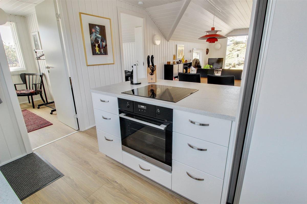 De keuken is uitgerust met koelkast Er is 4 inductiekookplaten, heteluchtoven, magnetron en vaatwasser.
