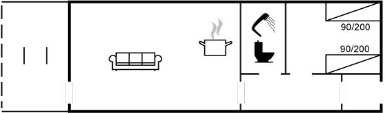 Er zijn in totaal 1 slaapkamer. De slaapplaatsen zijn als volgt verdeeld: 2 slaapplaatsen in eenpersoonsbedden. 1 slaapplaatsen in slaapbank (tweepersoons).