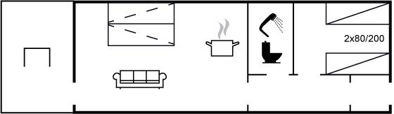 Er zijn in totaal 1 slaapkamer. De slaapplaatsen zijn als volgt verdeeld: 2 slaapplaatsen in eenpersoonsbedden. 2 slaapplaatsen in slaapbanken (tweepersoons).