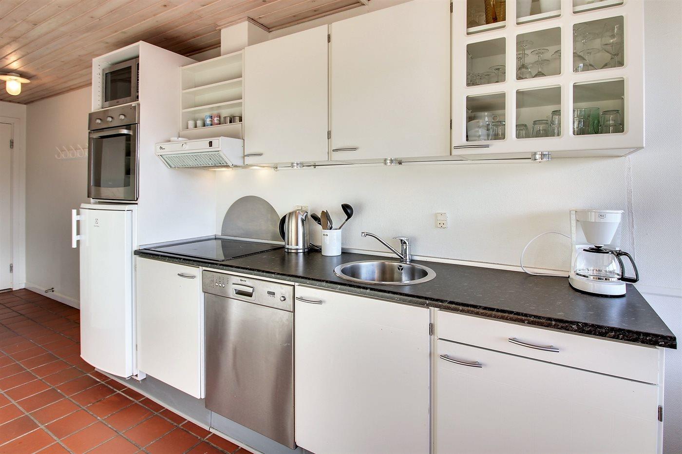 De keuken is uitgerust met koelkast Er is 4 inductiekookplaten, heteluchtoven, magnetron en vaatwasser.