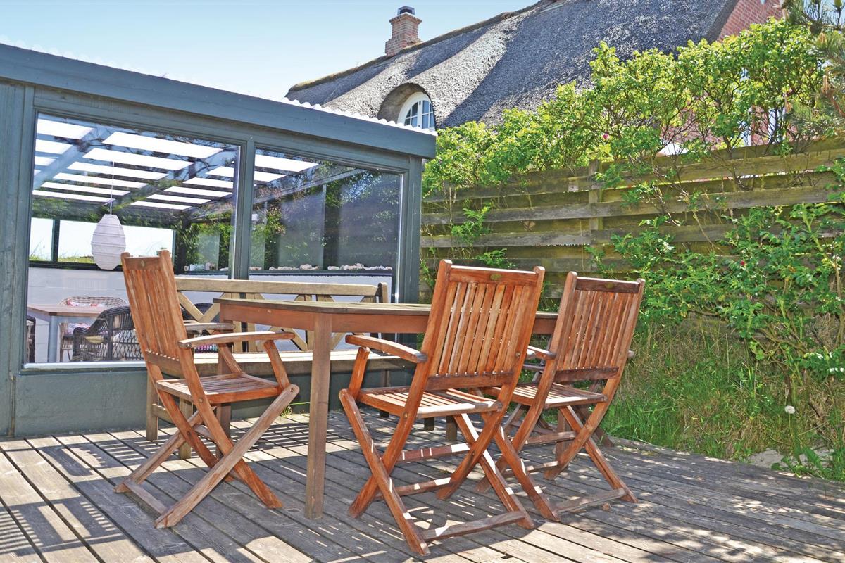 Je vakantiehuis in het noordwestelijke deel van Fanø nodigt je uit voor ontspannen dagen vol strandplezier, golfen en unieke natuurervaringen. Hier vind je alles wat je nodig hebt voor een zorgeloze vakantie. Maak 's ochtends een heerlijk ontbijt klaar en maak plannen voor je dagtochten aan de eettafel. Vanaf de bovenverdieping kun je genieten van een prachtig panoramisch uitzicht op zee. s Avonds kun je ontspannen in de gezellige zithoek en samen een leuke film kijken. Geniet van je avondkoffie in de serre terwijl de zon langzaam ondergaat en geniet van een zelfgemaakt diner op het terras.