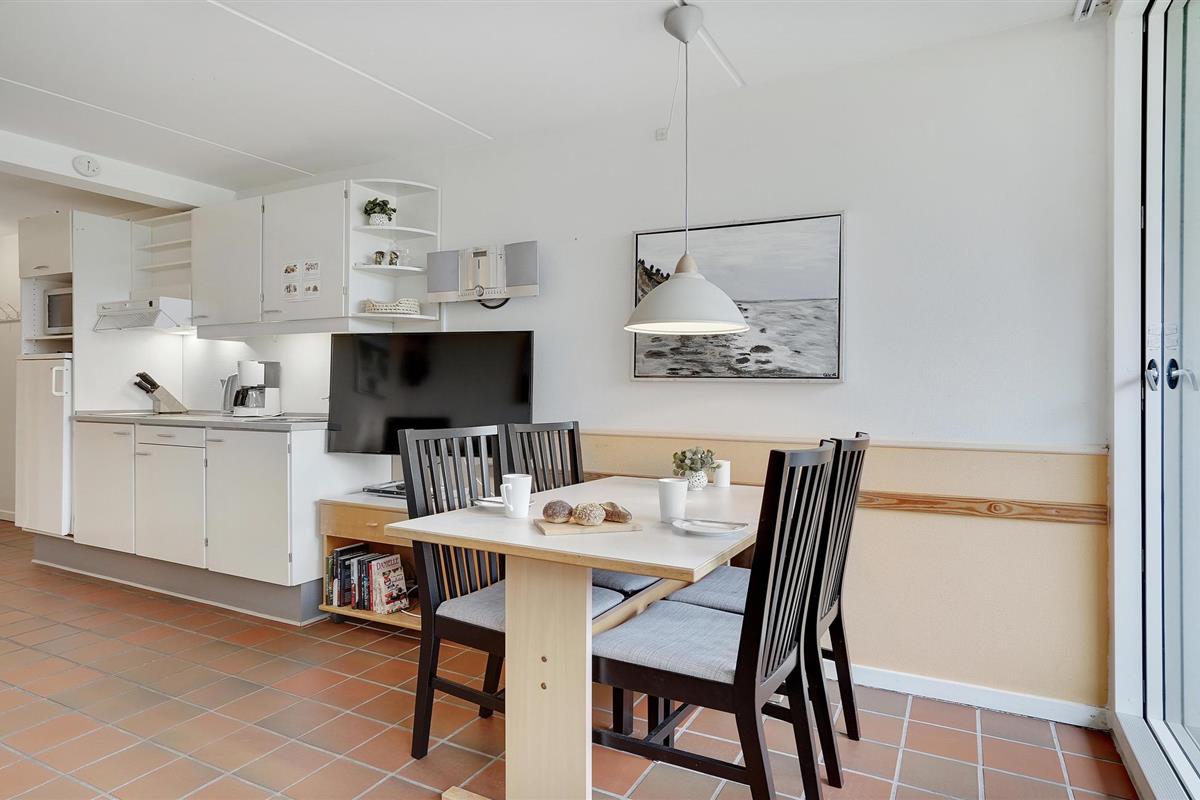 Vakantiewoning met een eigen klein terras. Het is gelegen in een huis op een paar honderd meter van het strand, de golfbaan, minigolfbaan, tennisbaan en restaurant. Fanø Bad is het breedste zandstrand van Denemarken en ligt direct voor de deur! Een betere locatie kun je je niet wensen. Je verblijft in individueel ingerichte appartementen in een groter complex in Fanø Bad. Hier kom je helemaal tot rust en kun je genieten van het ontspannen eilandleven op Fanø. Tafelvoetbal, airhockey en tafeltennis worden gedeeld. Ook voor een actieve vakantie ben je hier op de juiste plek. De enige golfbaan in Denemarken ligt naast de deur, met hole 18 als dichtstbijzijnde buur van het complex. Je kunt hier ook tennissen. Het witte zandstrand biedt een prachtige achtergrond voor vliegeren, windsurfen, paardrijden, strandzeilen, wandelen en natuurlijk zonnebaden. Aan de waterkant spoelt regelmatig amber aan en het is toegestaan om met de auto over het strand te rijden. Je kinderen kunnen gebruik maken van de nabijgelegen speeltuin of minigolfbaan. In de zomer is de binnenspeeltuin op Rødgård Camping Centre in Rindby gratis beschikbaar. De bosspeeltuin op weg naar Sønderho biedt ook vele uren speelplezier, waar je ook kunt genieten van de meegebrachte picknickmand. Sønderho heeft een charmante sfeer. Wandel door de smalle, kronkelige straatjes met gezellige eethuisjes en goede winkels. Nordby heeft ook een goede selectie winkels en cafés en is 's zomers gezellig druk. In beide steden creëren kunstenaars een unieke sfeer met hun galerieën en open ateliers. Fanø ligt midden in het Nationaal Park Waddenzee en is met zijn topografie en fantastische natuur bijzonder geschikt om te fietsen en te wandelen. Tijdens begeleide wandelingen kun je vogels, oesterbanken, zandbanken met zeehonden en vele andere bijzonderheden van Fanø zien. Het beleven van de getijden op het wad is een bijzonder mooie ervaring. Vanaf het strand in Sønderho kun je zien hoe snel het waterpeil verandert. Ontspanning, activiteiten, attracties, cultuur en een betoverende natuur wachten hier op je.