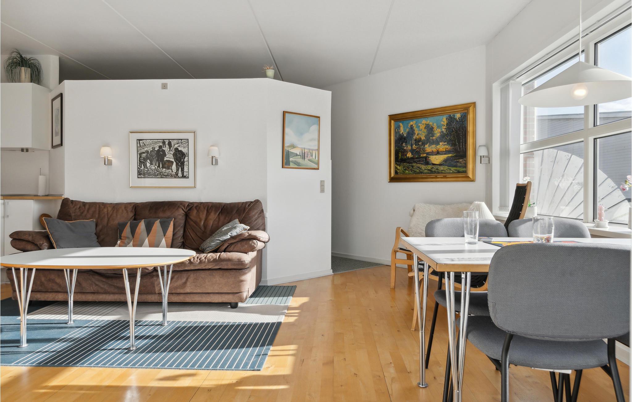 Dit lichte en uitnodigende vakantieappartement op de begane grond ligt op een steenworp afstand van het brede noordstrand van Fanø. In de open woonkamer vind je alles wat je nodig hebt voor een zorgeloze vakantie. Maak 's ochtends een heerlijk ontbijt en maak plannen voor je activiteiten en excursies op het eiland terwijl je eet voor de grote ramen. Profiteer van het terras voor je koffie in de namiddag en geniet van de zonnestralen op je huid. s Avonds kun je je voeten op de bank leggen, ontspannen en samen naar een leuke film kijken.
