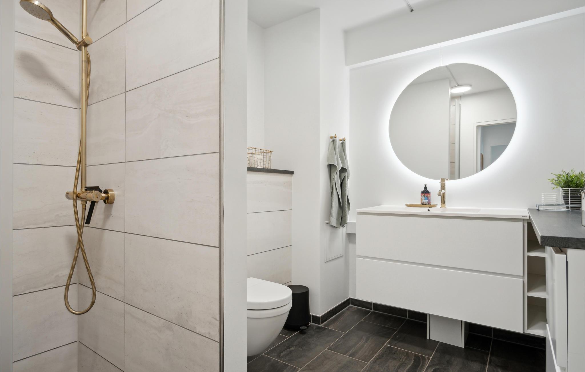 Badkamer (nr. 1) - Toilet: warm en koud water. Douche