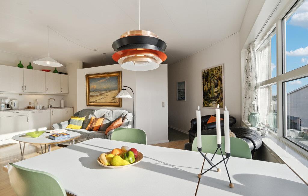 Dit lichte en uitnodigende vakantieappartement ligt op slechts een steenworp afstand van het brede noordelijke strand van Fanø. In de gezellige woonkamer vind je alles wat je nodig hebt voor een zorgeloze vakantie. Maak 's ochtends een heerlijk ontbijt en maak plannen voor je activiteiten en excursies op het eiland terwijl je eet voor de grote ramen. s Avonds kun je je voeten op de bank leggen, ontspannen en samen een leuke film kijken.