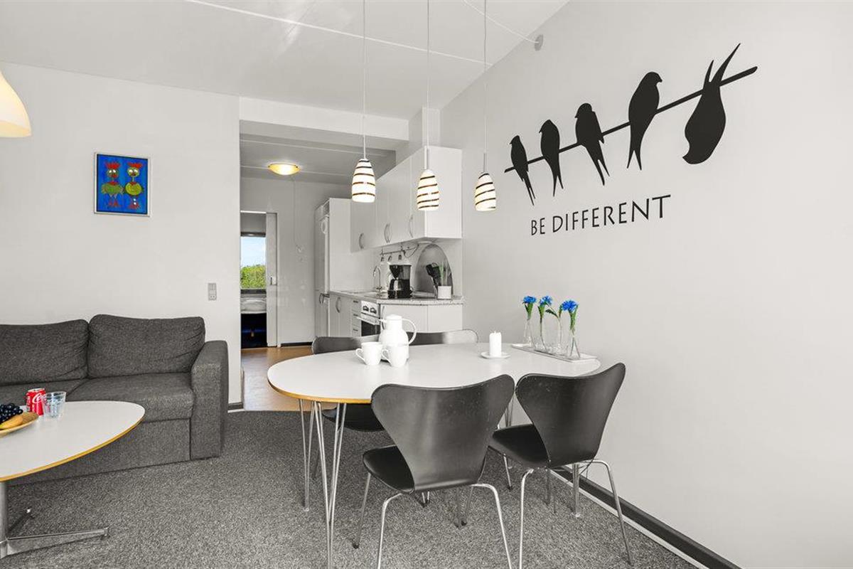 Dit compacte en uitnodigende vakantieappartement ligt op een steenworp afstand van het brede noordstrand van Fanø.