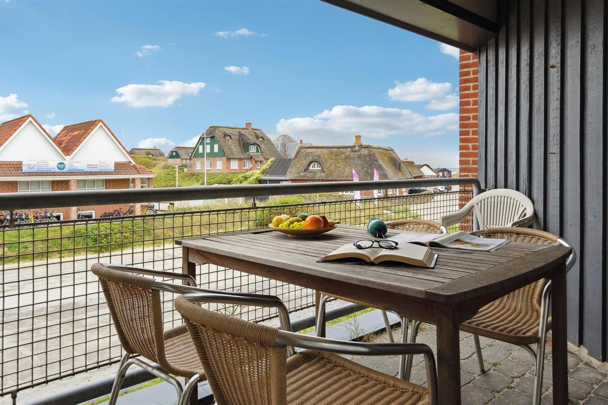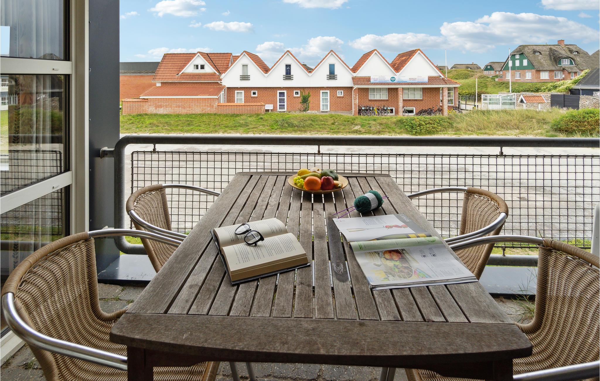 Ontdek dit lichte vakantieappartement met balkon, vlakbij het brede strand van Fanø Bad voor een ontspannen verblijf.