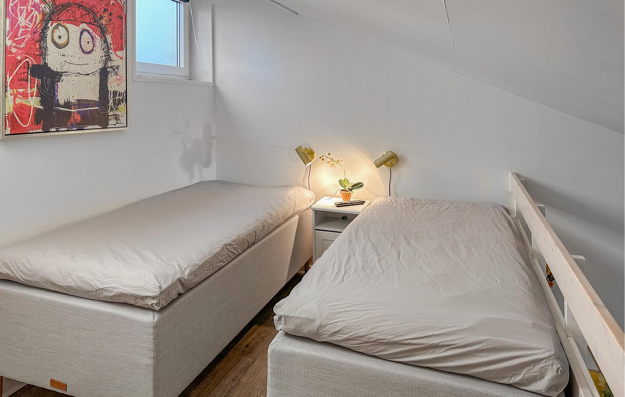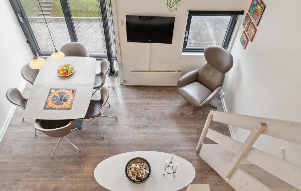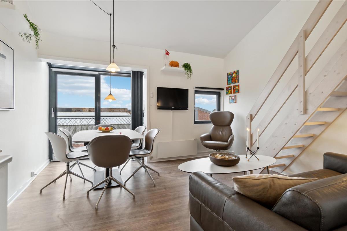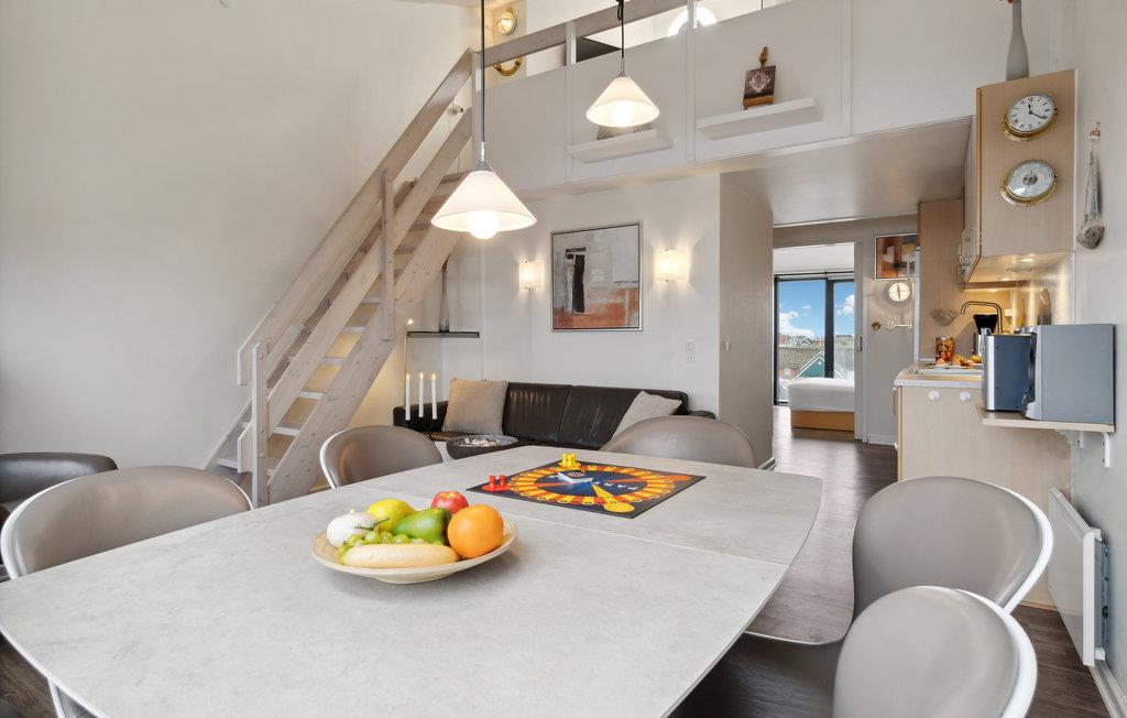 Dit gemoderniseerde vakantieappartement ligt op slechts een steenworp afstand van het brede zandstrand van Fanø en biedt een stijlvolle ambiance. De open woonkamer is smaakvol ingericht met designmeubels en creëert een gezellige sfeer met mooie details, kunst aan de muren en grote ramen. Begin de dag met een ontbijt in de lichte woon- en eetkamer en geniet van de frisse bries op het Franse balkon. De moderne loft biedt je extra comfort met een design ventilator die het klimaat aangenaam houdt.